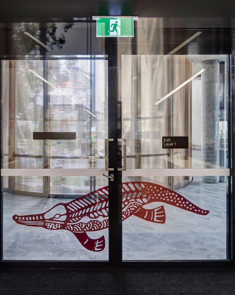 The outdoor learning terraces and garden play areas promote openness and a connection to nature, echoing traditional learning environments found in cultural practices. Murals from the original school, painted by Blak Douglas (Adam Hill), were recreated in the new facility, ensuring a continuity of culture. Additionally, totems designed by Uncle Neil (Thorne) are incorporated into the design, linking the classrooms to cultural narratives and enhancing the educational experience.