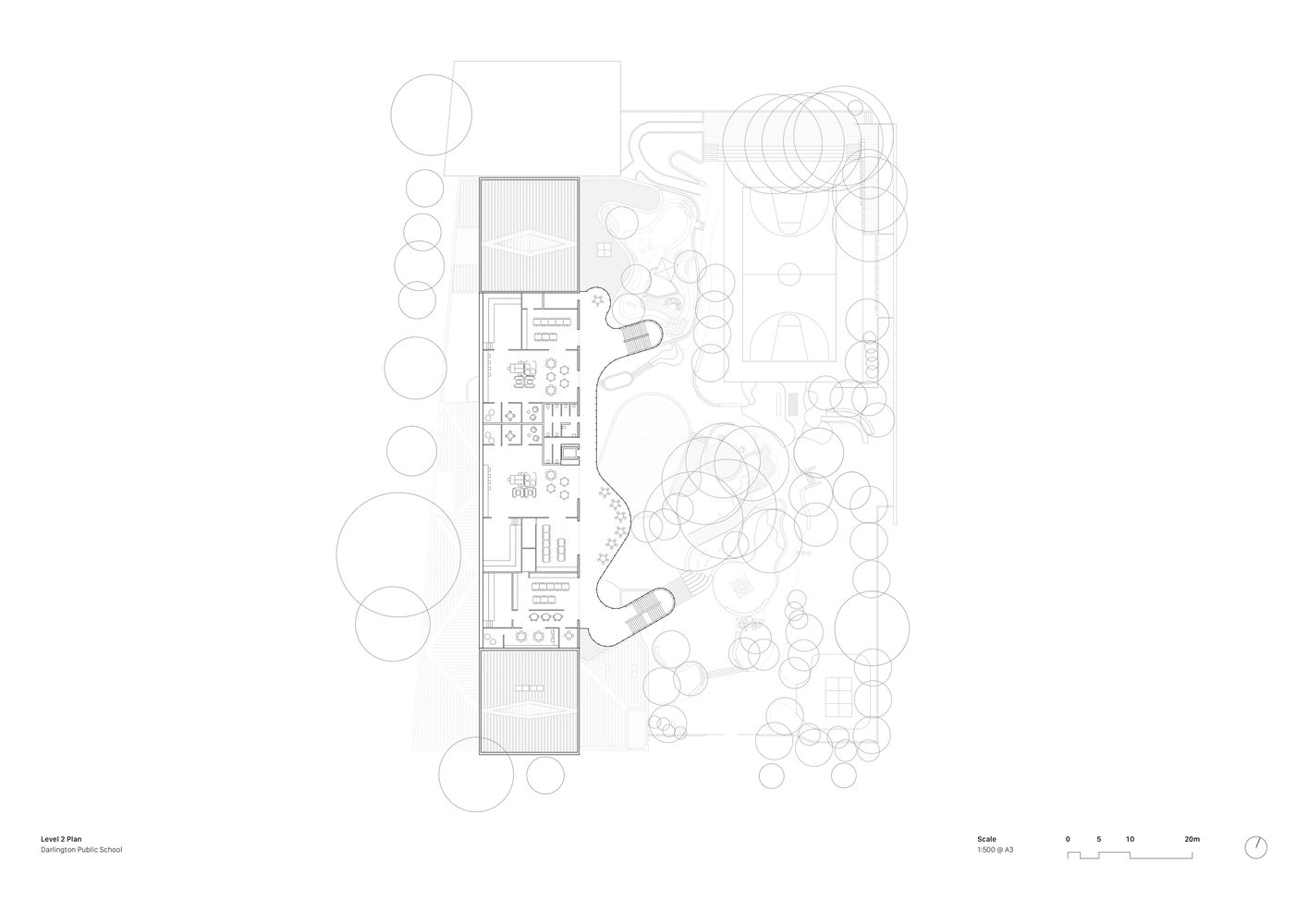 Darlington Public School is a community school located in a thriving inner-city suburb of Sydney, with strong connections to Aboriginal people. The school serves as a model for innovative educational spaces, emphasizing the integration of First Nations culture and sustainability. Designed in collaboration with educational consultants, New Learning Environments, the school features adaptable learning hubs that foster collaboration and inclusivity. These spaces support active, quiet, and outdoor learning, creating a safe and inviting atmosphere that maximizes natural light and ventilation. The design incorporates perforated screens that reflect the local casuarina trees, further connecting the school to its natural surroundings.