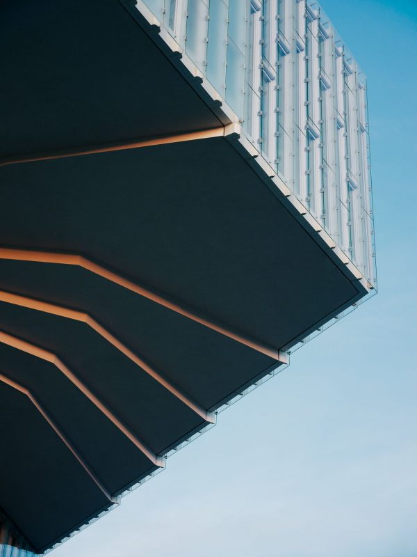 The site is relatively small. In order to avoid building too many floors, the building cantilevers out above its footprint: The first floor above the street to the east, and the fourth floor almost 20 meters out above the urban plaza, creating a protective covering for the entrance. This largest cantilever displays the building to the city and still preserves the line of sight to the neighbouring Opera. The cantilevered floors are suspended from the roof above. The roof has a characteristic folded geometry that provides structural strength.