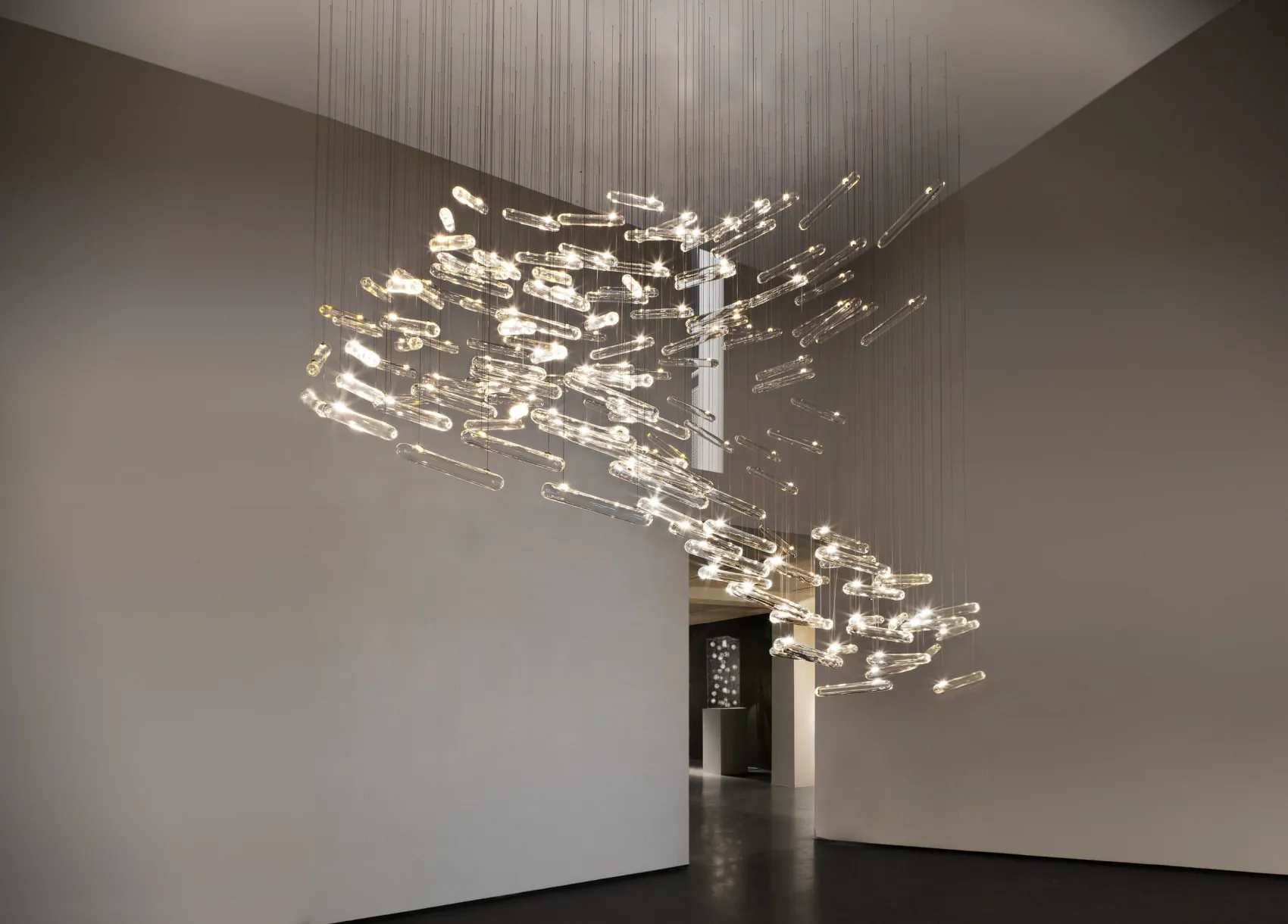 ‘Dandelight’ – made with real dandelion seeds and LED – consists of a simple flower transformed into a design object. While ‘Flylight’ (2007-2009) is a site-specific installation inspired by flocks of birds and made using glass, custom made fittings, LED, software and electronics. Its configuration emphasizes the delicate balance between the group and the individual. Conceptually, these artworks reflect the lightness and fragility of nature, or question the rules of society.