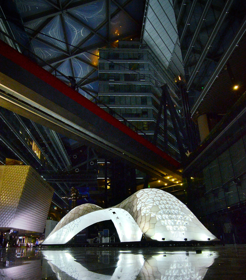 Conceptualized and brought to life by architects Yu Lei and Xu Feng from Laboratory for Creative Design (LCD), Beijing, Vulcan consists of numerous 3D printed modules assembled to look like an erupting volcano (thus the name). The design is heavily inspired by silkworms, with a tripodal design with silky lines running across it. The polygonal facets were 3D printed by a team consisting of 15 individuals using 20 large 3D printers. It took only 12 days to finish the design and to assemble a total of 1086 3D-printed pieces to form this masterpiece.