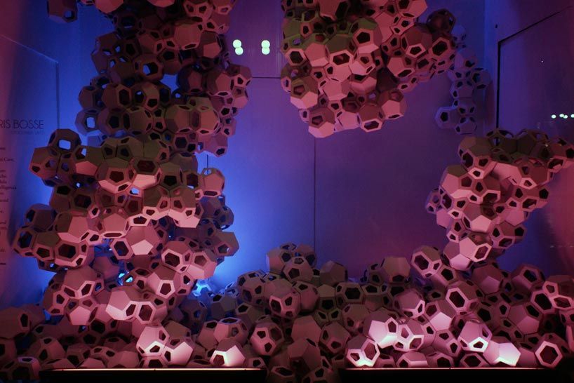 The installation shows how a particular module, copied from nature, can generate architectural space, and how the intelligence of the smallest unit dictates the intelligence of the overall system. Ecosystems such as coral reefs act as a metaphor for an architecture where the individual components interact in symbiosis to create an environment.