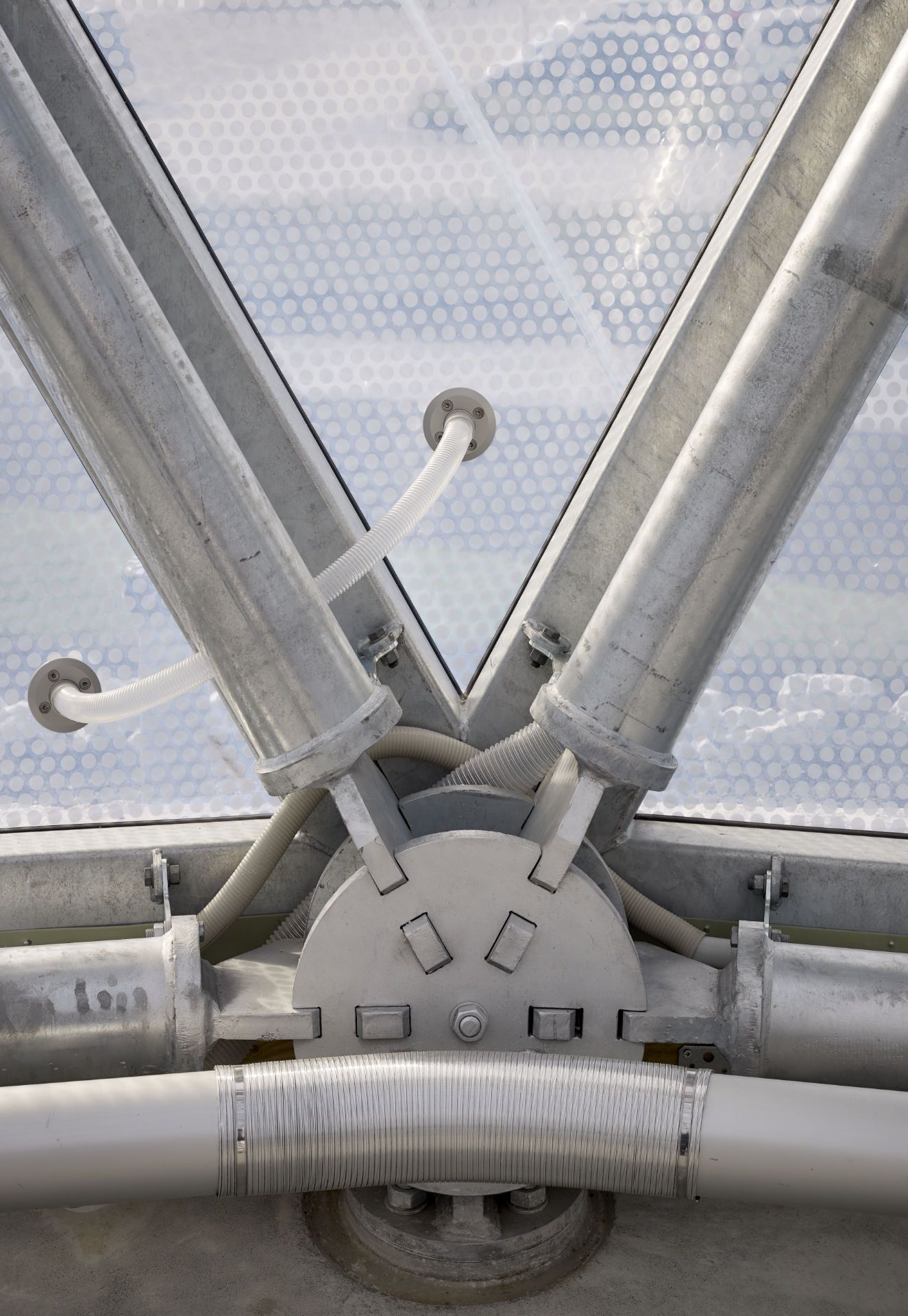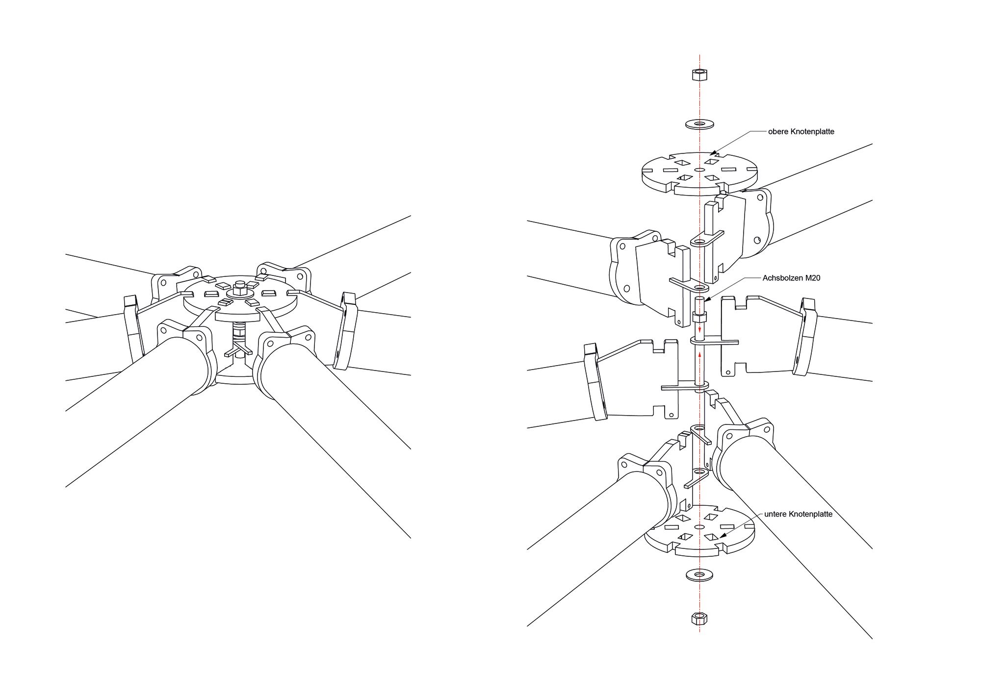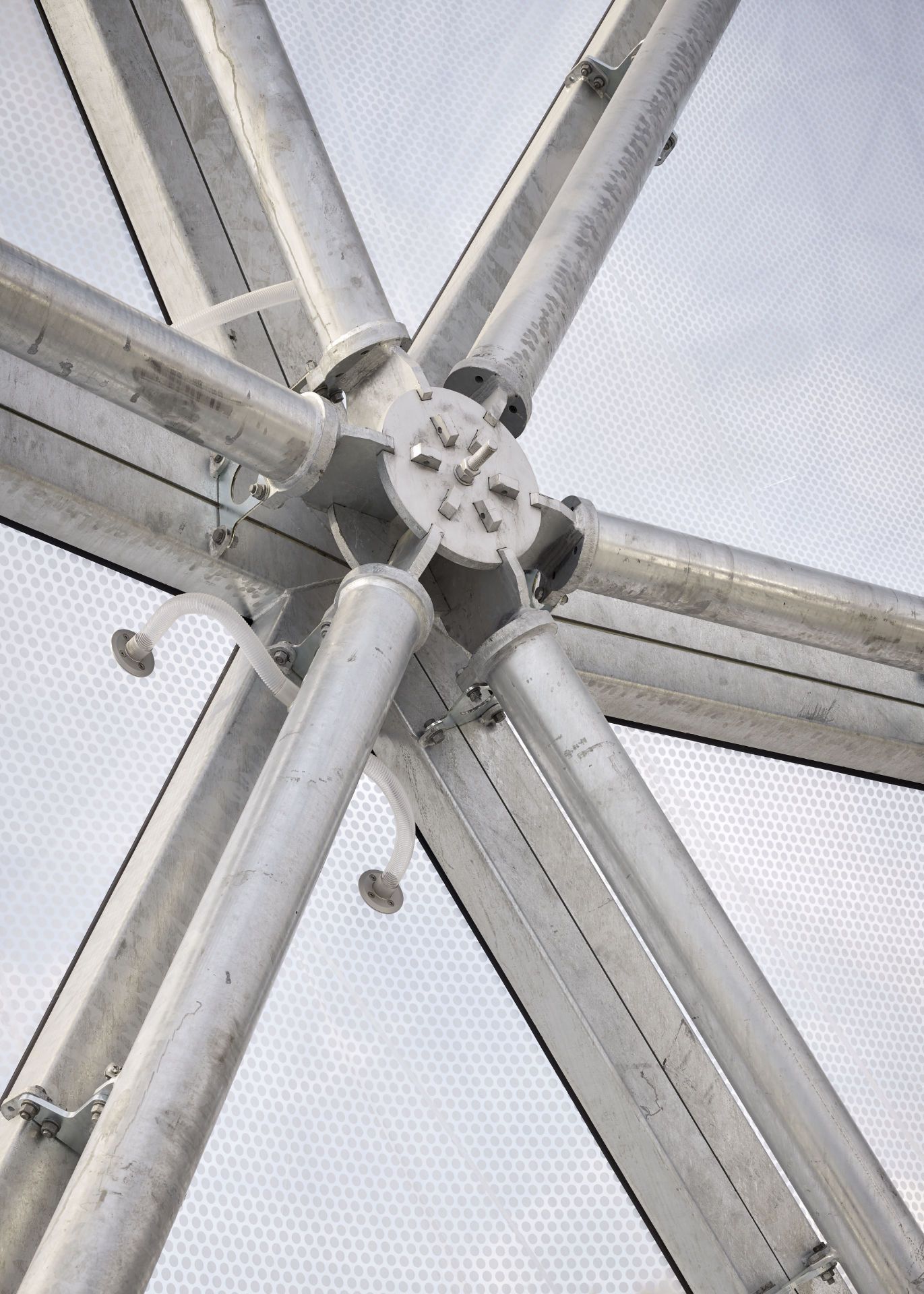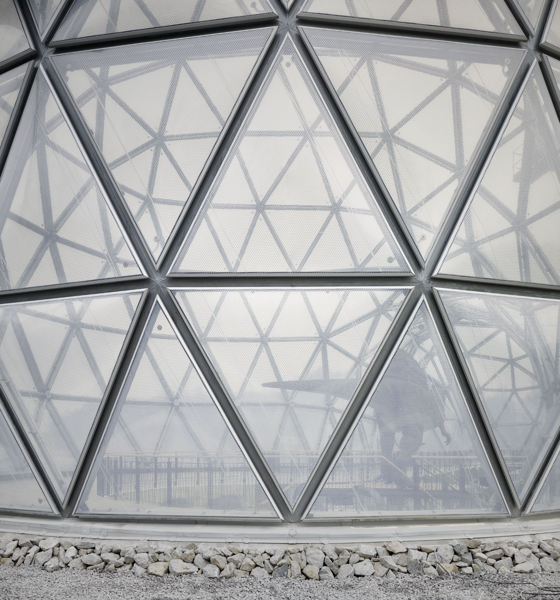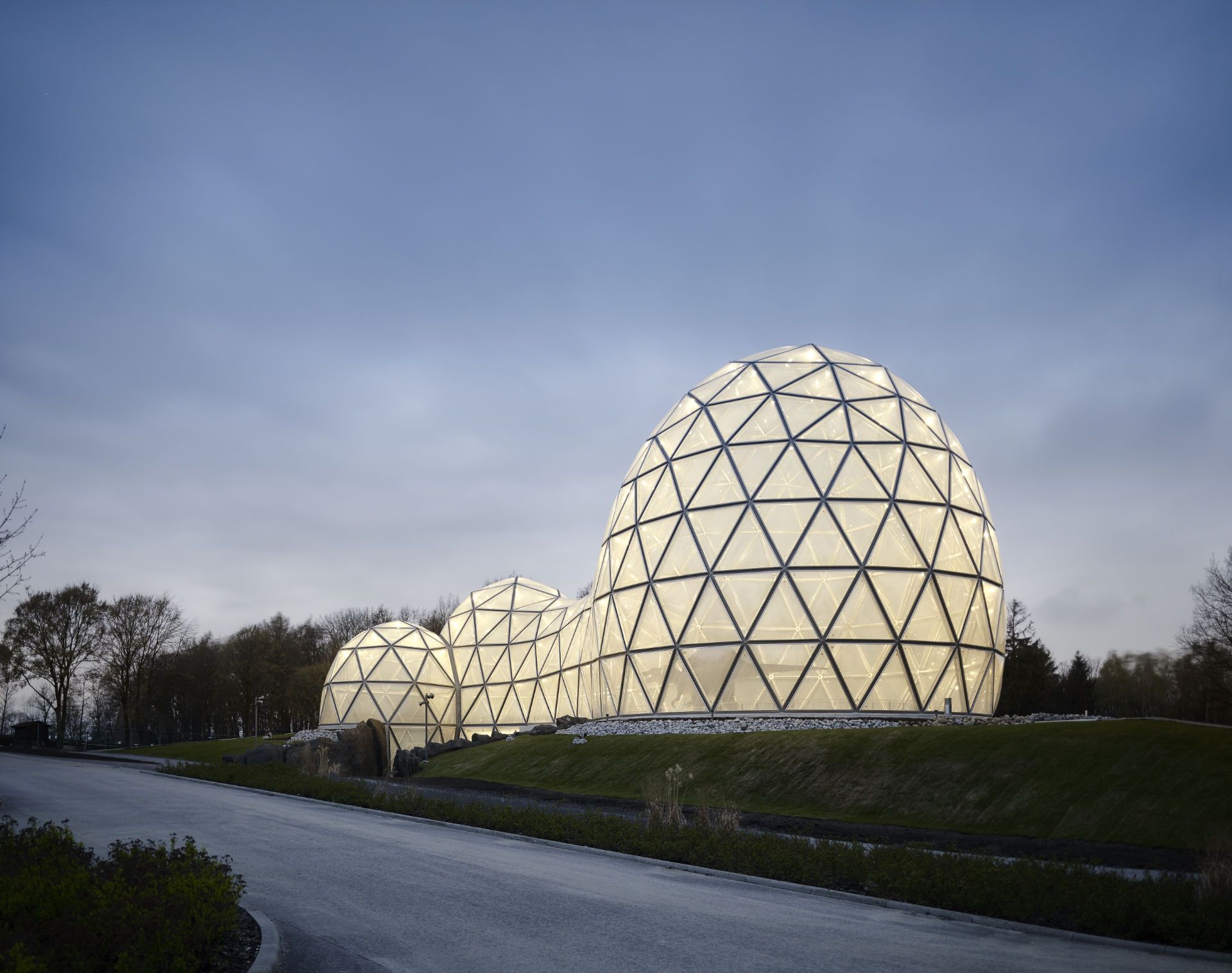 The nature creates genius, viable, and aesthetic shapes, which constitute role models for the realized dome membranes. Here, the borrowing of shapes and constructions from the nature are not plagiarisms, but necessary references to enable an intelligent, aesthetically ambitious and economical construction. The interior of the building is flooded with light through the transparent shell. While twilight and the after the connected inversion of light conditions, the cell membranes become luminous landmarks.