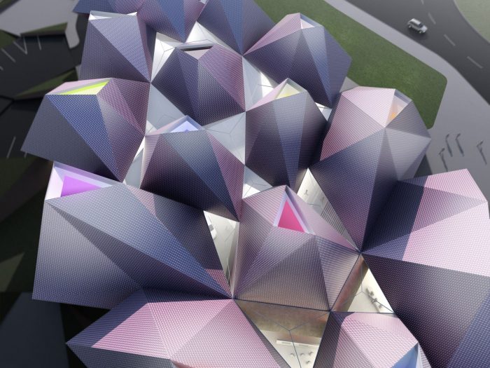 While usually science museum are designed to contain smaller scale exhibits, the center is created as a continuation of distinct spaces, with each exhibition creating a specific atmosphere, enhanced by structural, mechanical and electrical infrastructure.The exhibit spaces recreate the form of “boulders”, with singular central space, surrounded by circulation areas. The heart of each boulder is stressed through lighting and color, which fade out towards the lobby and reception spaces.