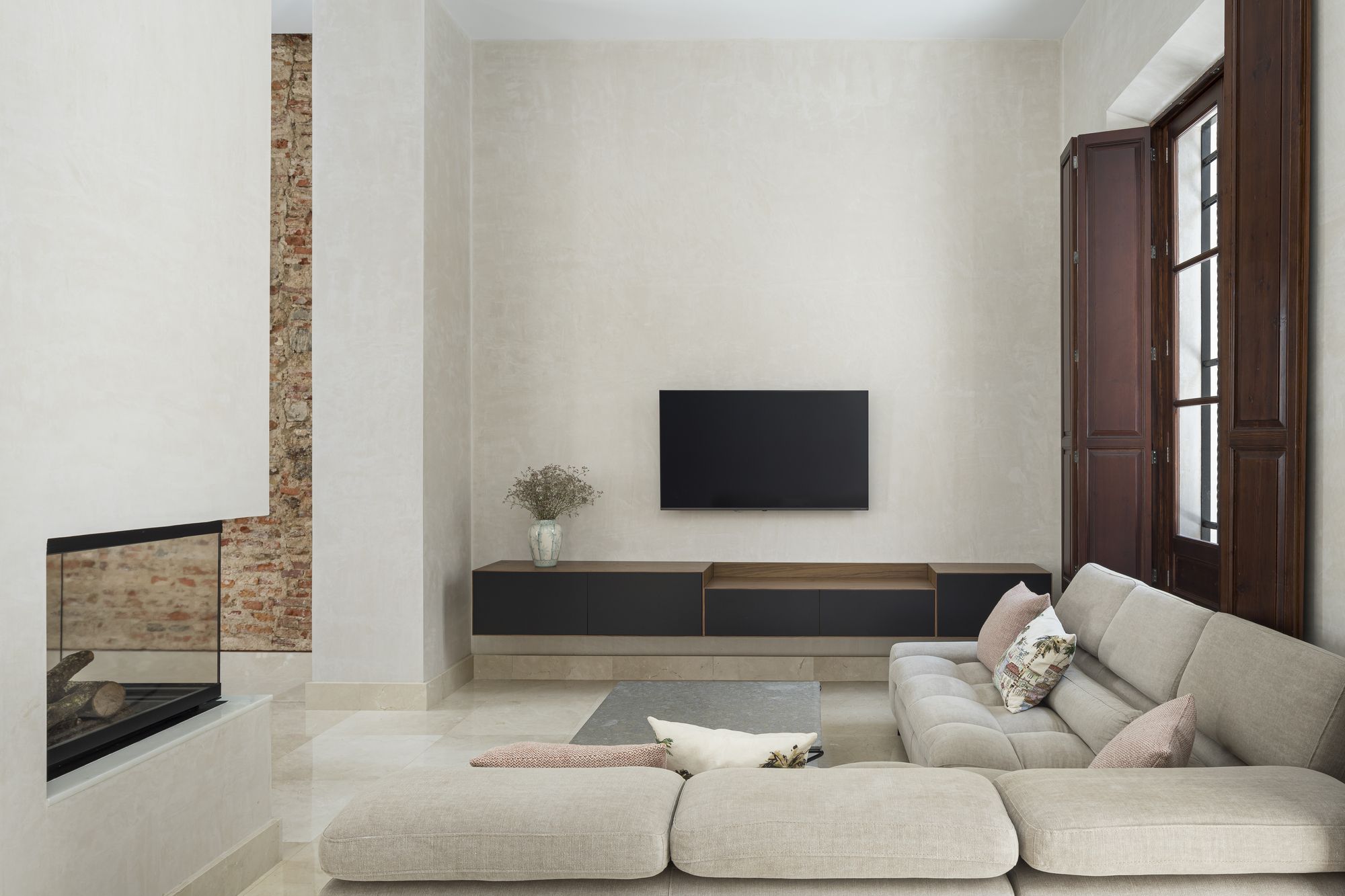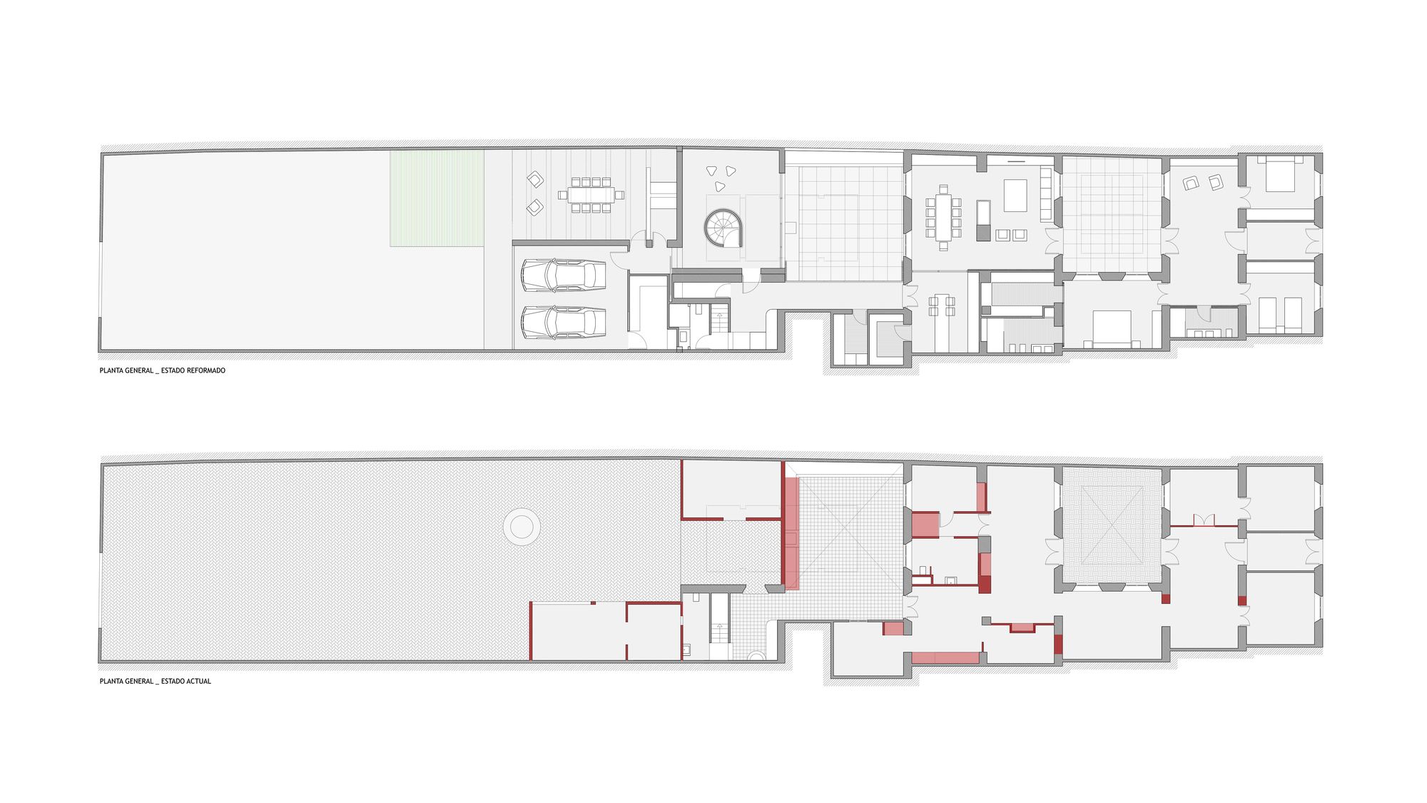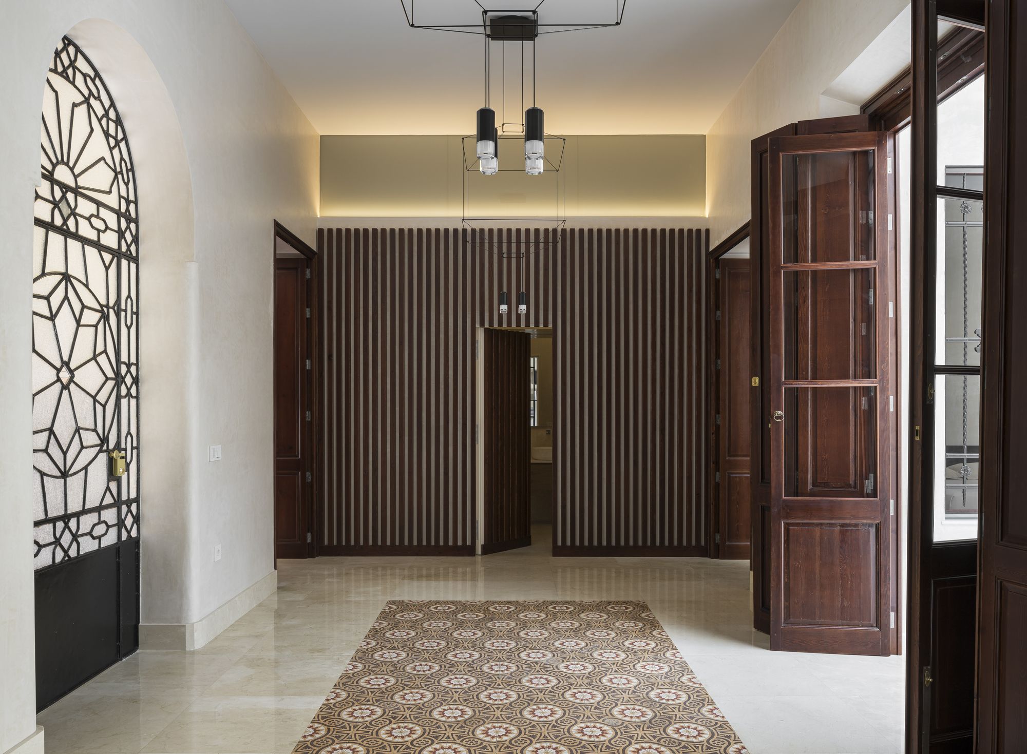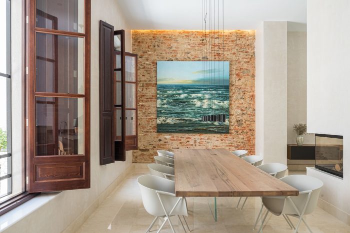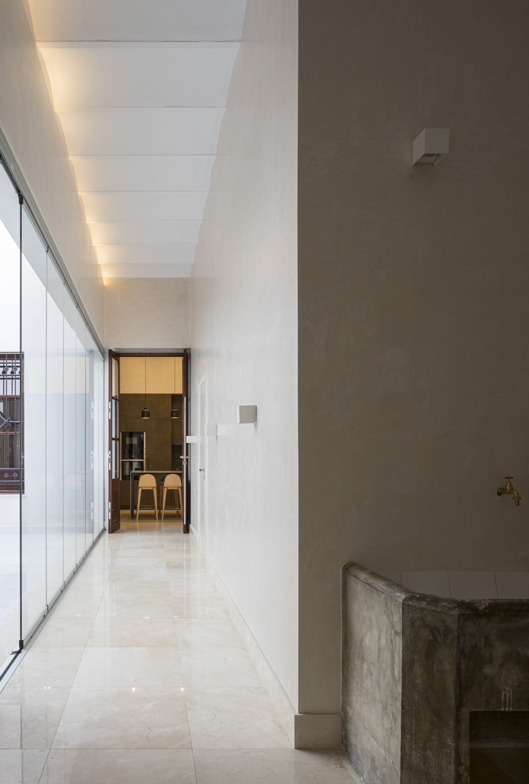 Its style is regionalist , with a certain neo-Mudejar influence. So its soul is even older. The house contains three patios, around which the rest of the rooms are arranged. The way its build reminds you of a typical Roman Domus. The hall is followed by the atrium, but this time not as an impluvium that collects rainwater, but rather as a natural light space. The heart of the house, the living room and the dining room, are located in the place of the tablinum, a representative space of the Roman house and link between the atrium and the peristyle. Reorganizing the special division of rooms and achieve visual amplitude were the main objectives of the restructuring. The way its designed, so typical of the andalusian Casa Patio, connects different patios, which in this way naturally give light and ventilation to the whole house.