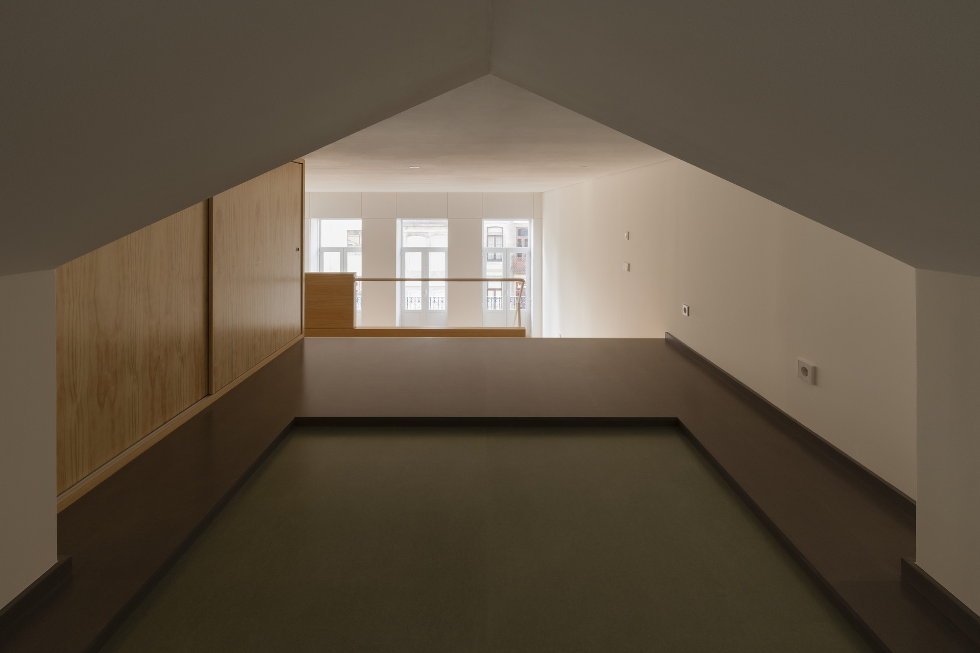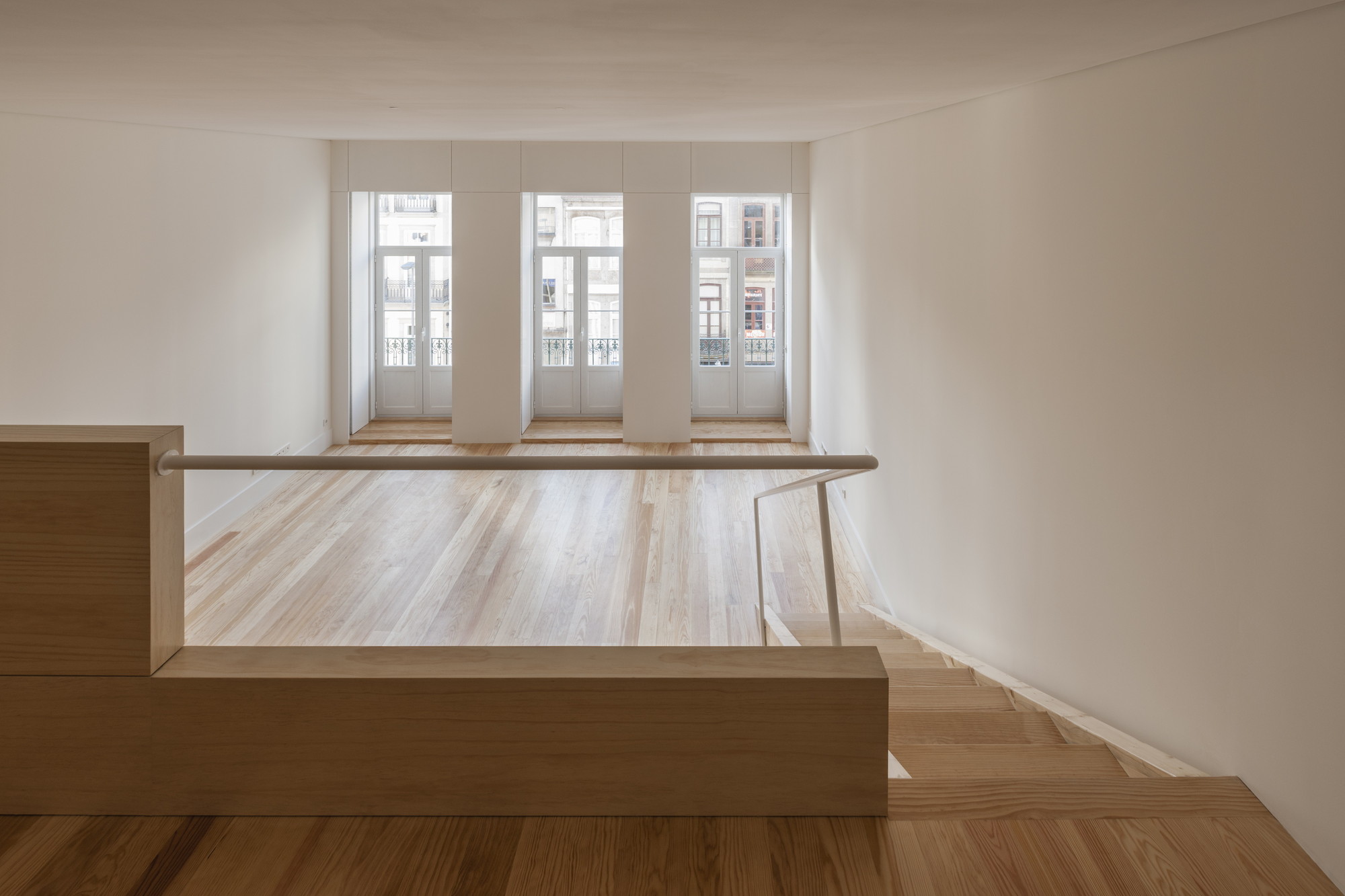 In terms of language, the project seeks to respect the history of the building, both by the predominance of wood and by the reinterpretation of some specific elements of the architecture of this time, namely the window shutters and the high skirtings. In addition, the design of the ceiling stands out on the mezzanine because goes back to the image of the Portuguese vernacular house. The “house within the house” is the concept of this project and the desire to enhance the space of this apartment with the domestic comfort characteristic of a detached house.