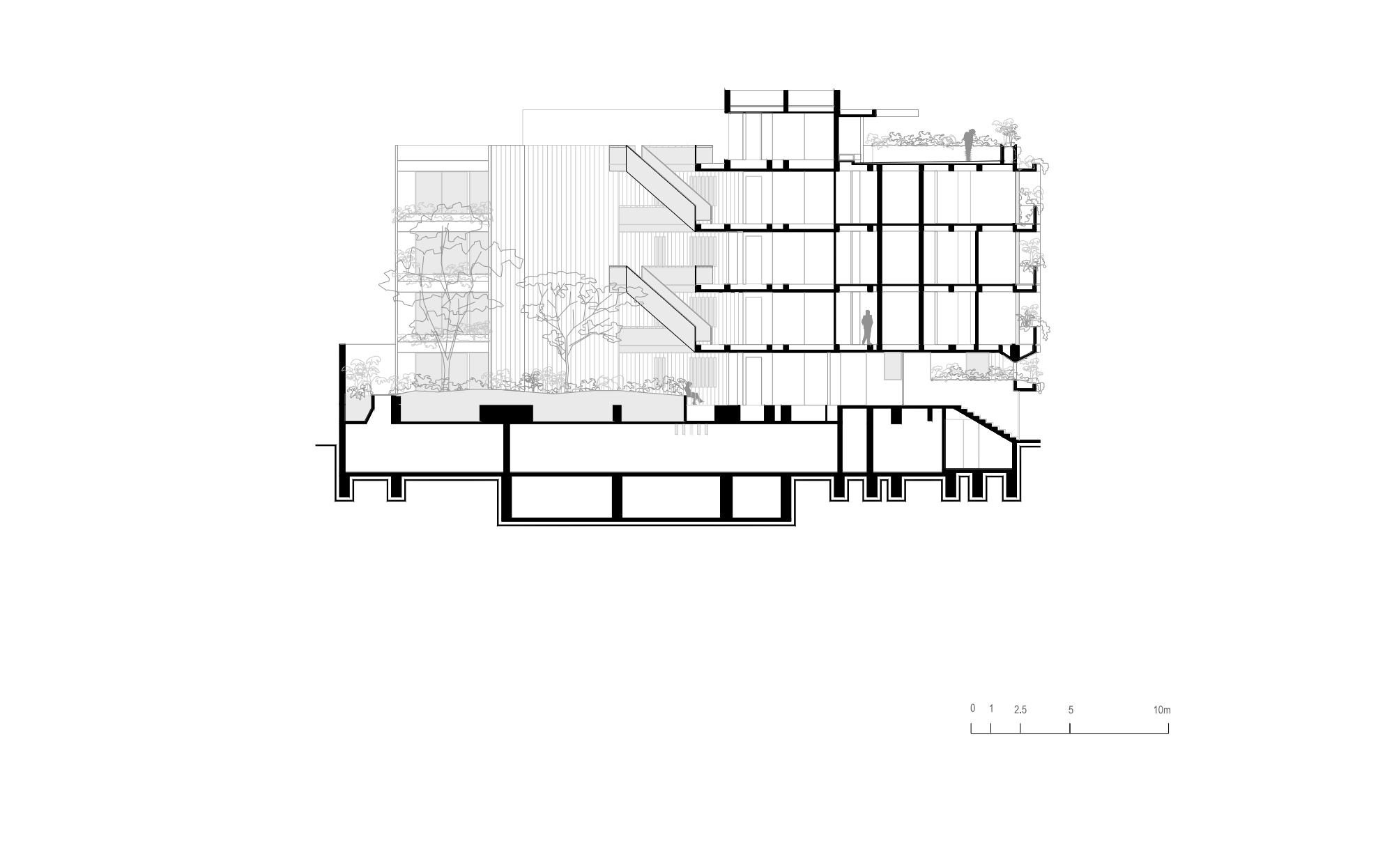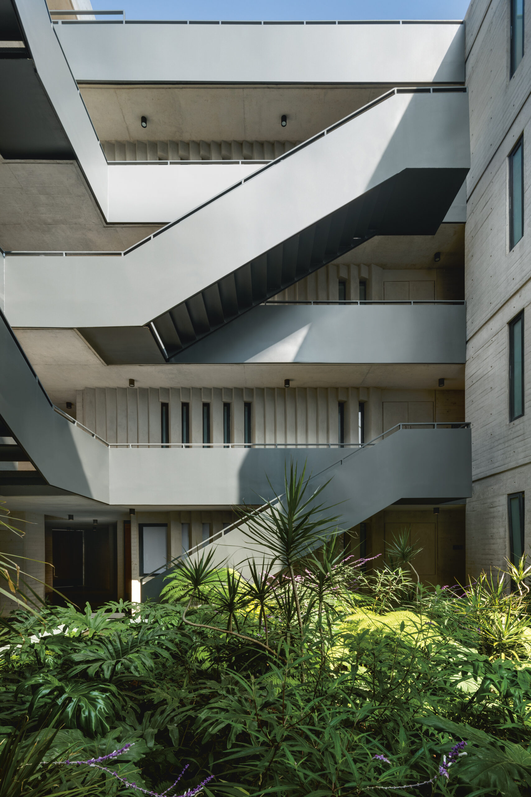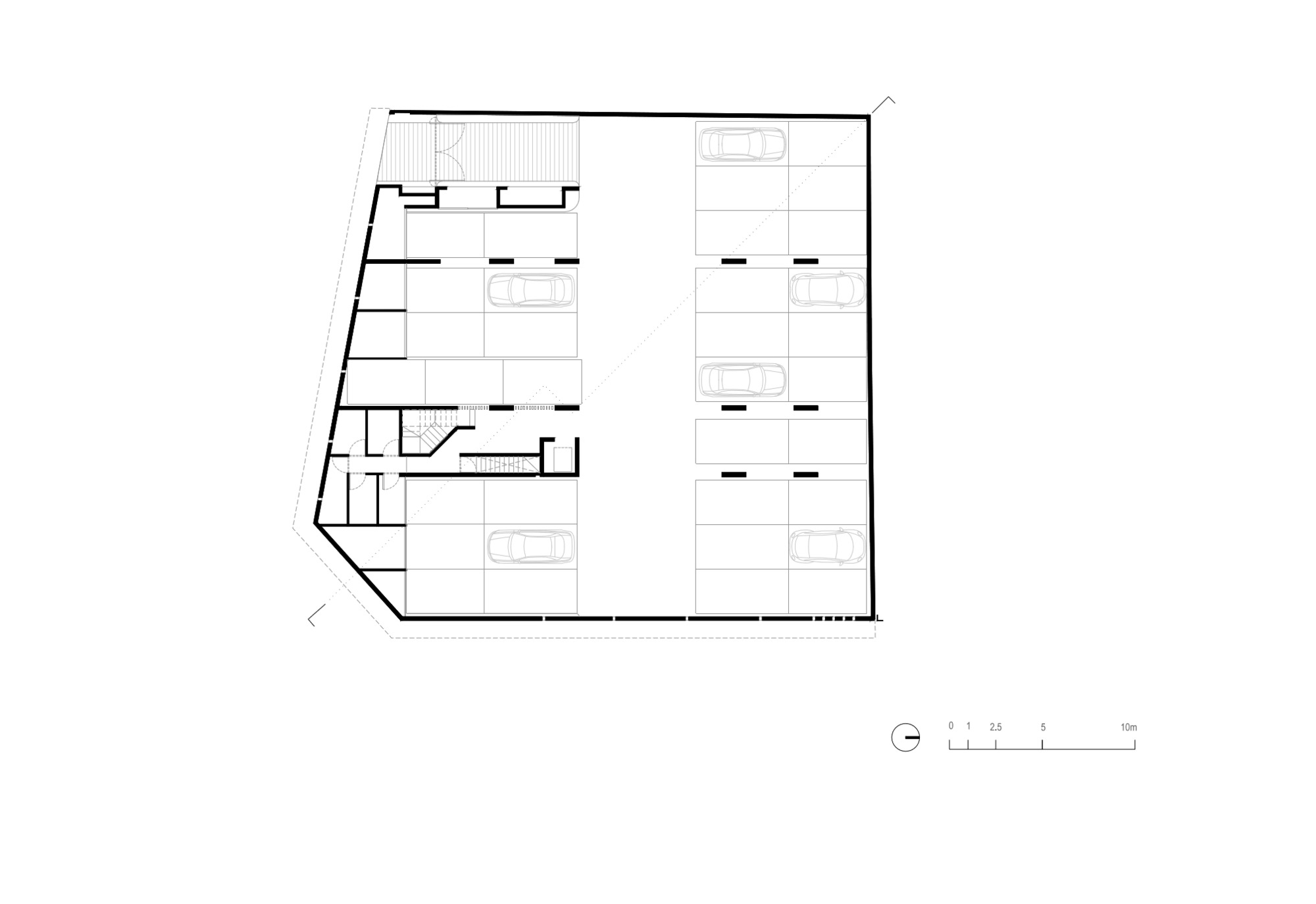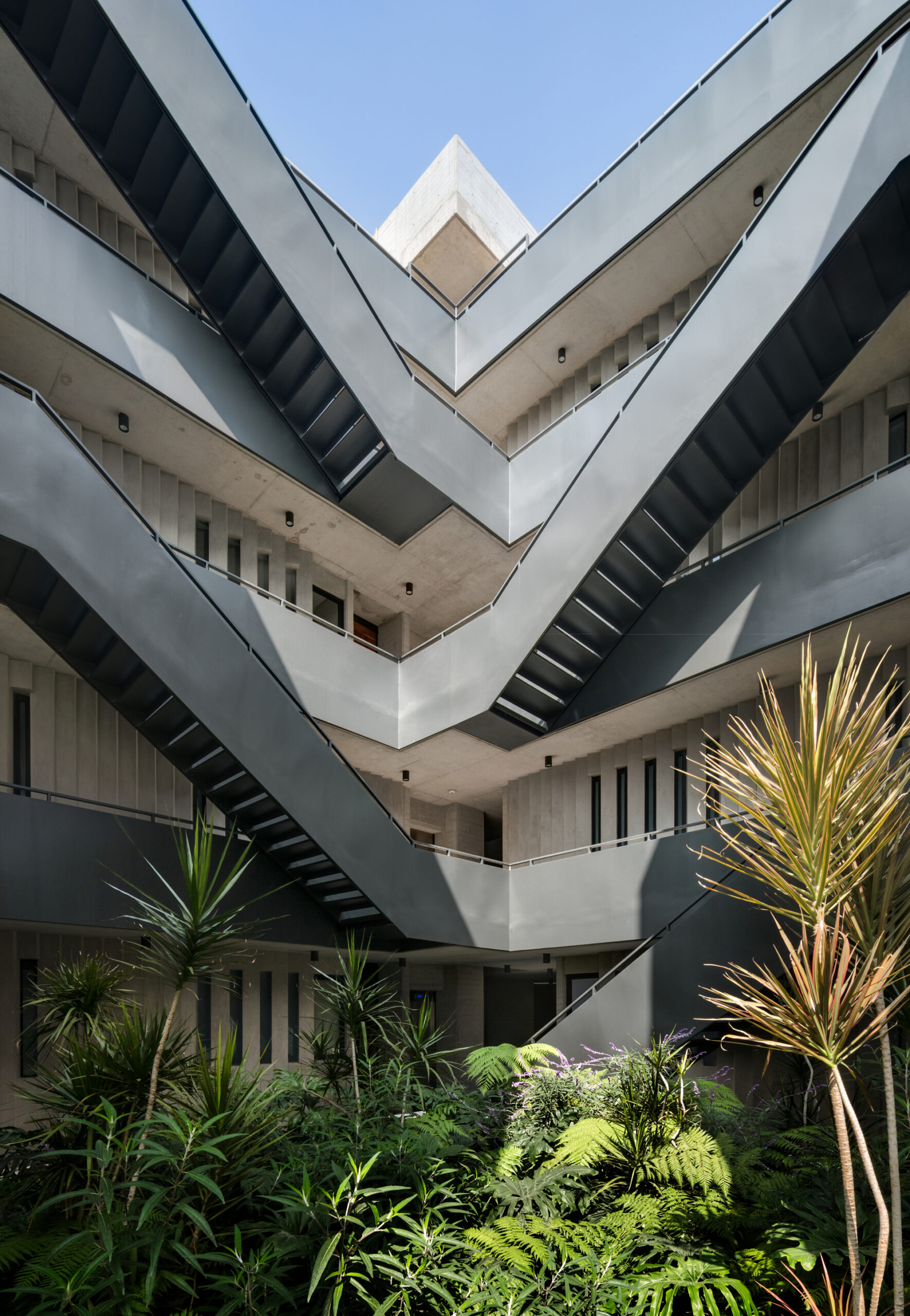 DPS Apartments, The design explores the traditional type of housing in Colonia del Valle, where the corners of the buildings are cut away, creating a wide street centre. Taking advantage of the space created in these intersections, the scheme is solved through a diagonal sequence of open spaces that go from the public to private.