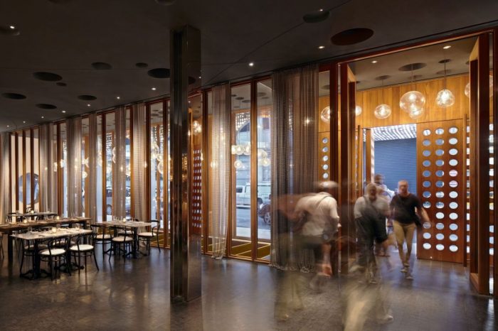 The original through block building offered limited possibilities for natural light. Four floors were removed from the center of the building, which created a new pool terrace and beach along with new windows and balconies for guestrooms. The glass bottom pool allows guests in the lobby glimpses through the water to the outside (and vice versa) connecting the spaces in an ethereal way. Light wells framed in teak between the lobby, pool and lower level levels allow the space to flow.