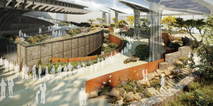 The gardens surrounding the pavilion design are an integral part of the visitor experience, both experiential and functional, setting the stage for the exhibition contents within and creating gathering areas that will manage and distribute crowds while providing retail, food and beverage opportunities.