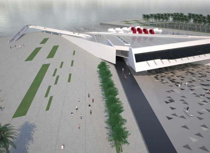 Relating to both the sea and the city and in a constant dialogue between them, the building is an extension of the city to the sea and vice-versa. Conceived as a continuation and a transition through the wide public space, the building dives into the ocean and merges with it. It develops as a triangular sharp form, which concentrates the public routes to the museum, through an inviting shape that draws visitors to the entrance and distributes them to the interior.