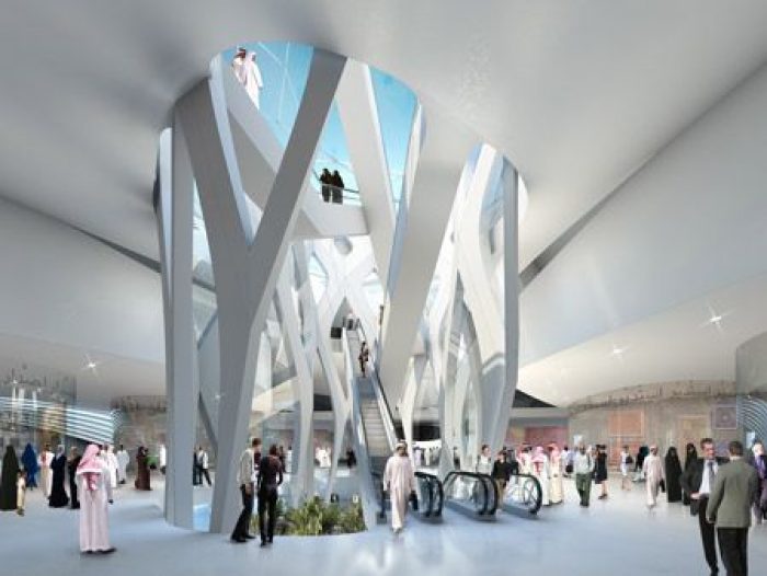 The proposal by UNStudio for the Dubai Museum of Middle Eastern Art is a futuristically formed volume which speaks strongly of edifice and line. The fluid lines of the facade emerge from the building’s two visually strong end facades to flow across the long ends, bringing a strong horizontal motif to the design.