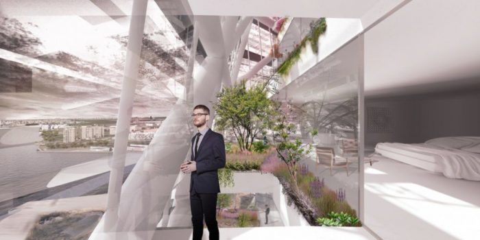 It is a perfect example of how technology has been used to progress architecture and vice-versa. It is being developed as an icon for the economically emerging Netherlands and to become financially viable it houses an apartment building. The outer ring has 40 cabins that rotate on a rail system. The inner ring is the windmill and within it are apartments, a hotel, a restaurant, a sky lobby and commercial functions.
