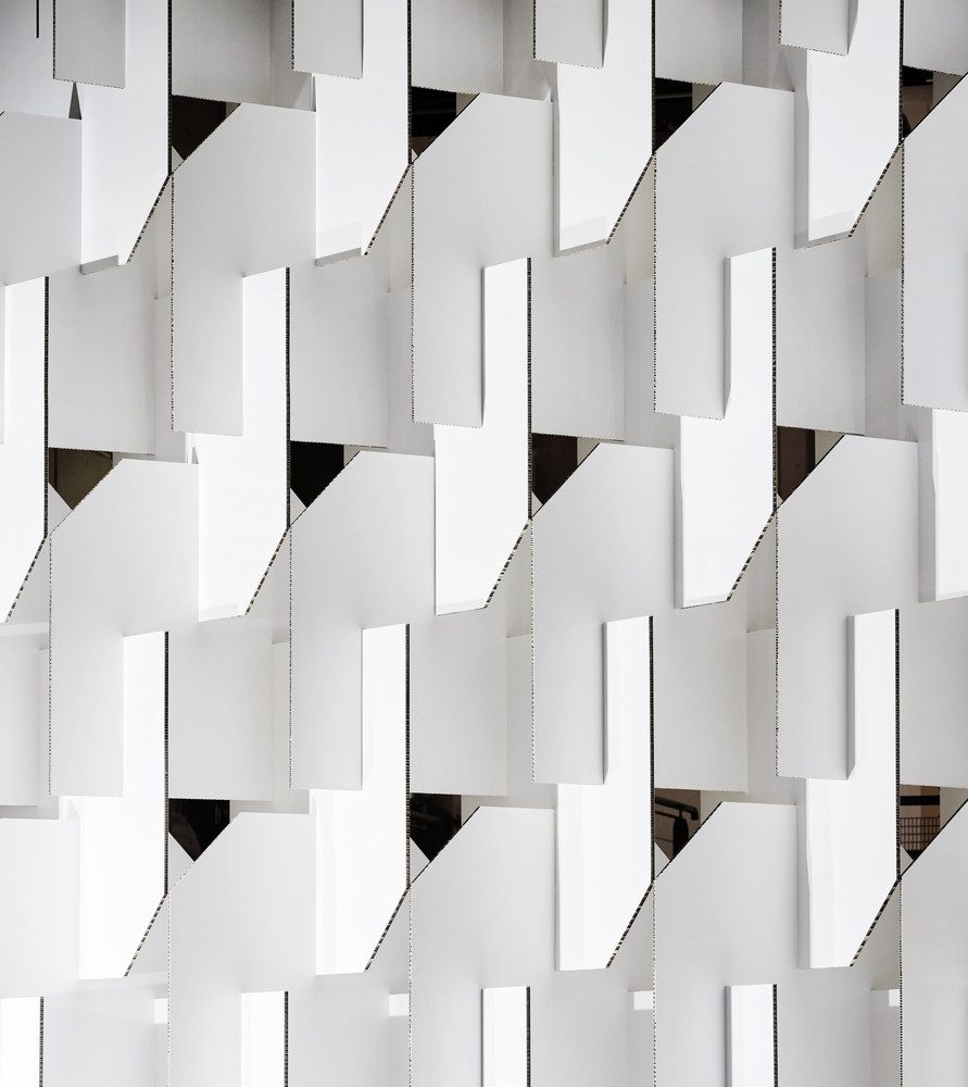 Standing 7-metre tall, it formed not only the central attraction but also created a new brand identity for the WAF, being easy to take down and reassemble at any part of the world. While the installation went well with the monochrome setting of the exhibition and did not draw much attention away from the exhibits, it stood merely as a 2-sided wall of cards semi-enclosing a space for discussion and interaction amongst people. I wish the installation had been a bit more playful and interactive in itself, as the House of Cards are – but all in all a great job done by Populous.