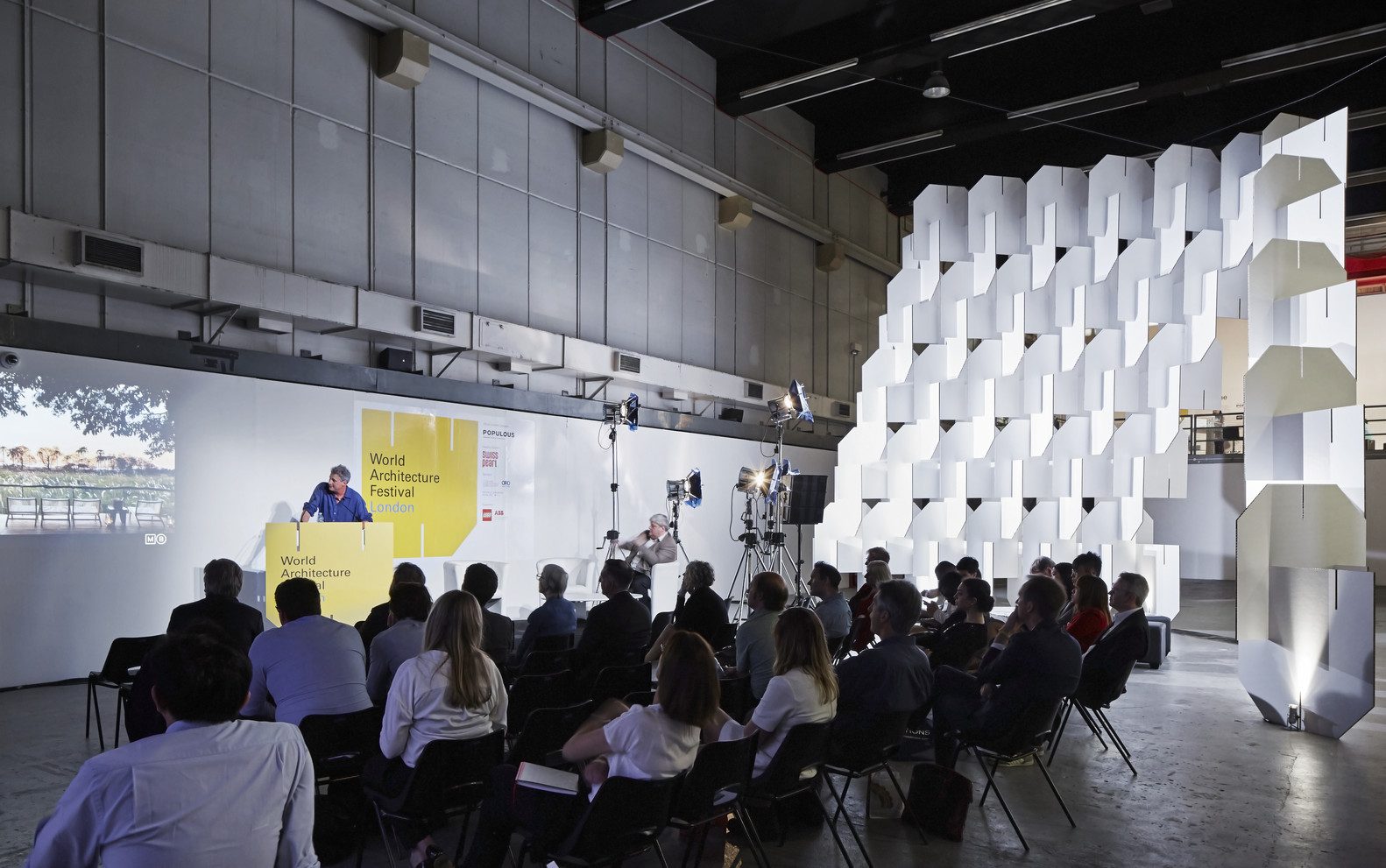 London based practice Populous was chosen to design this year’s exhibition for the World Architecture Festival(WAF) held from June 24th to 27th by the University of Westminster. Held in collaboration with the London Festival of Architecture, the Festival showcased 350 of some of the best projects from around the world. Inspired by the House of Cards by Charles and Ray Eames, Populous created hundreds of supersized ‘W’ shaped cards for an inter-lockable structure which became their installation and the centrepiece for the Festival.