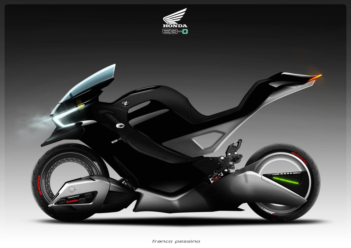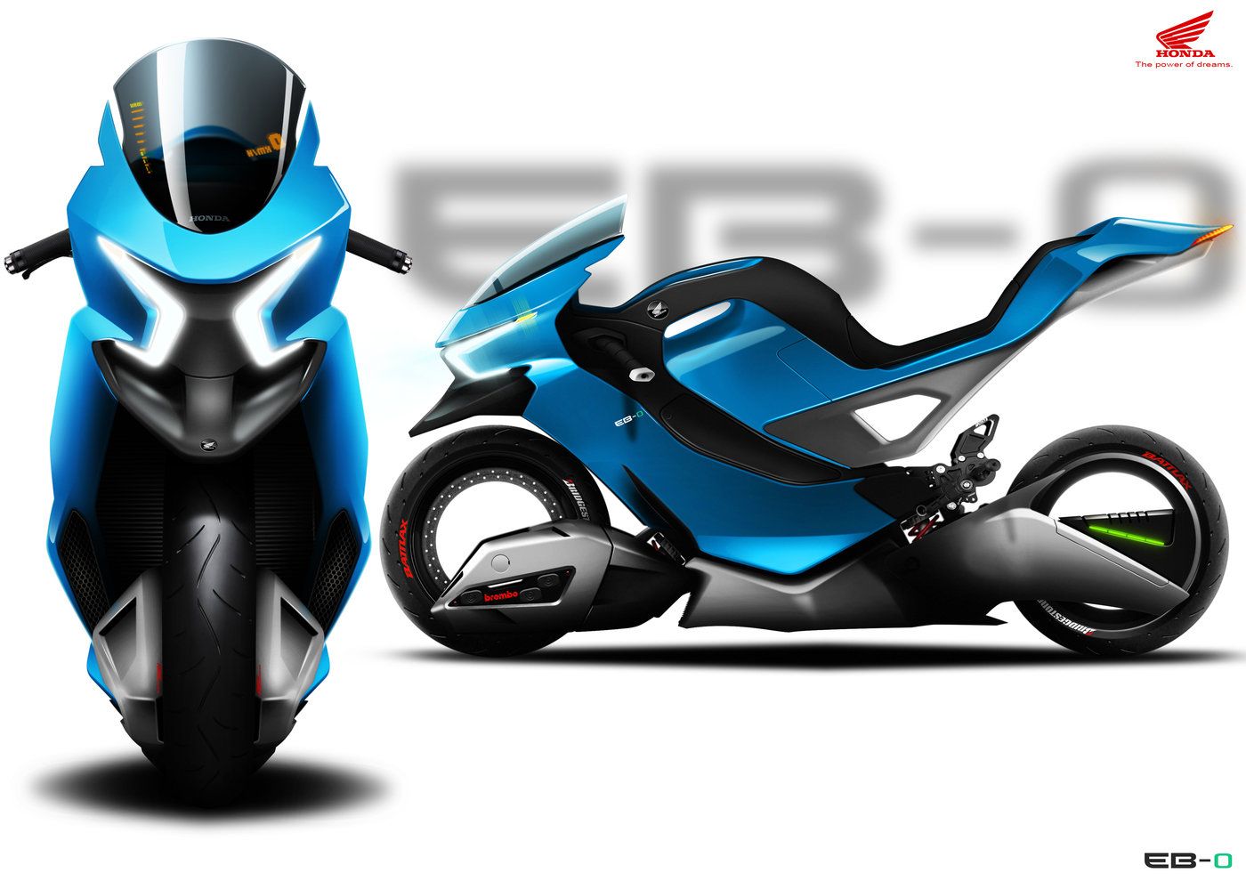 The EB-0 is an electric motorcycle with an engine for each wheel, which allows the bike to accelerate and brake with the same mechanic assembly. The design reflects simple and fluid lines that emphasize the movement and combines the ruggedness of a racing bike.