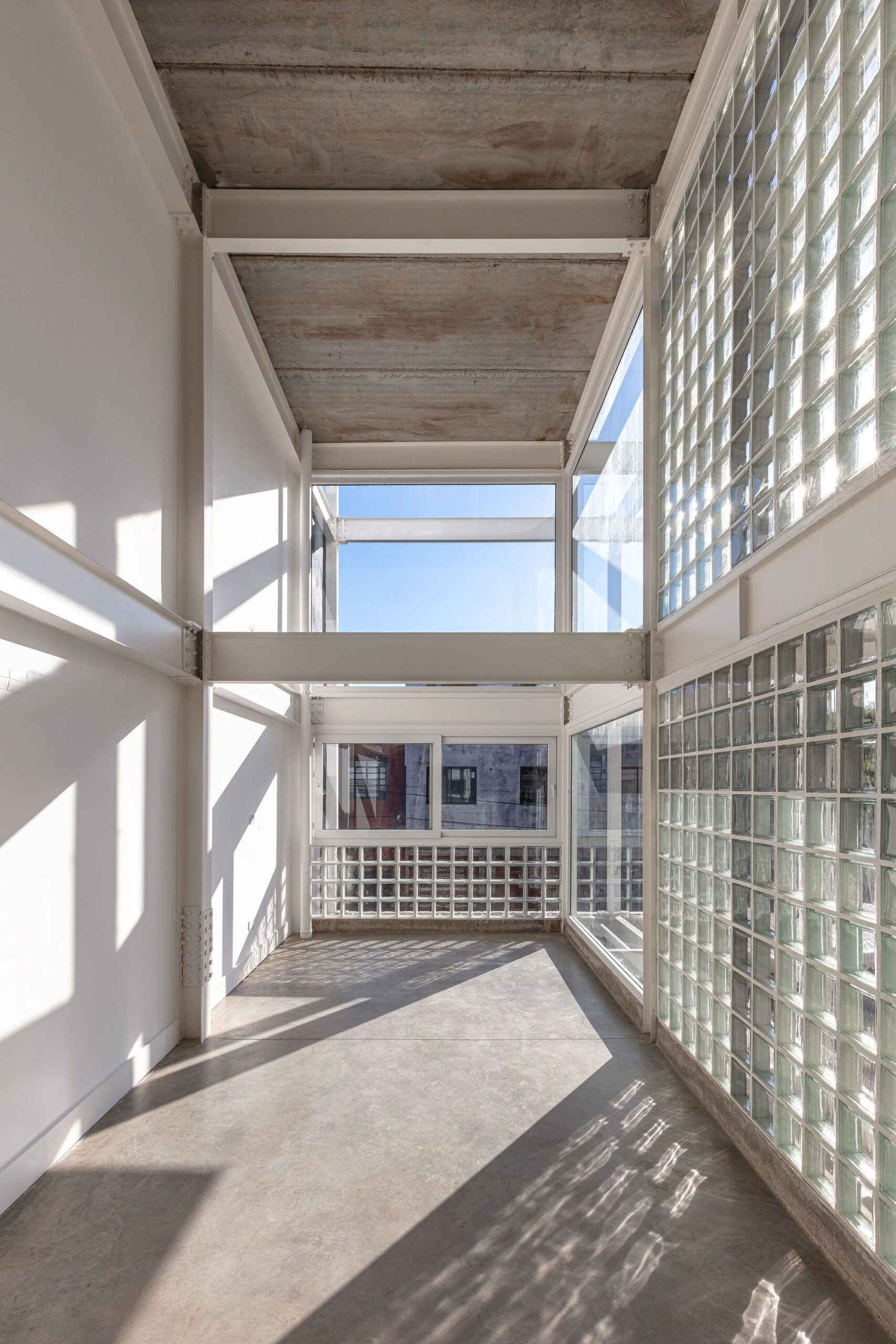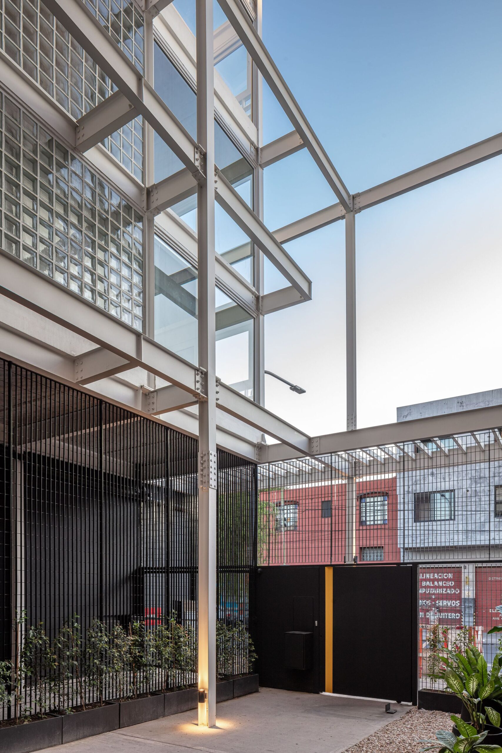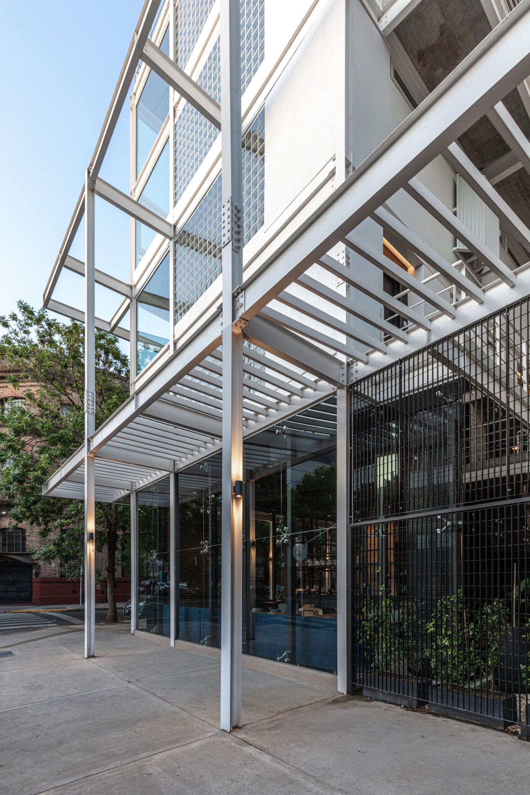 Por nuestra experiencia en agregar valor a edificios patrimoniales, el empleo de estructuras de acero está presente en nuestros proyectos y ya habíamos construido un estudio de fotografía editorial nuevo empleando perfilería de acero W con encofrados colaborantes para steel deck. Con el factor de edificabilidad, el partido y el programa, la elección del método constructivo fue indudable y a medida que fuimos trabajando con nuestros asesores de ingenierías y proveedores el proyecto fue tomando volumen y funcionalidad casi naturalmente, en un proceso de diseño interdisciplinario que tomó prácticamente un año.