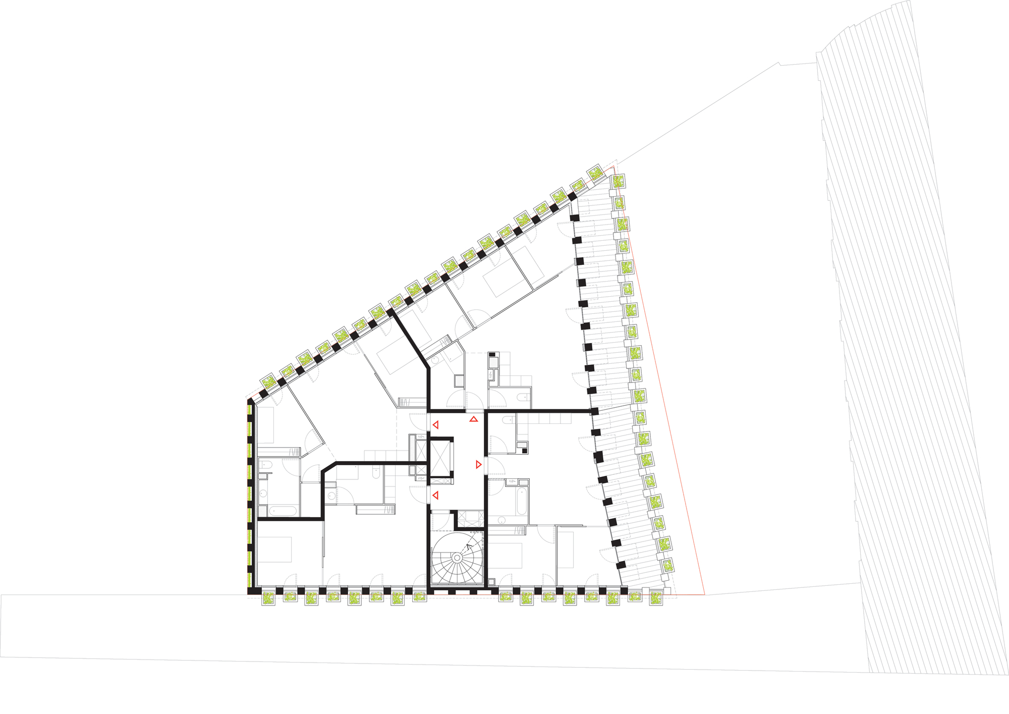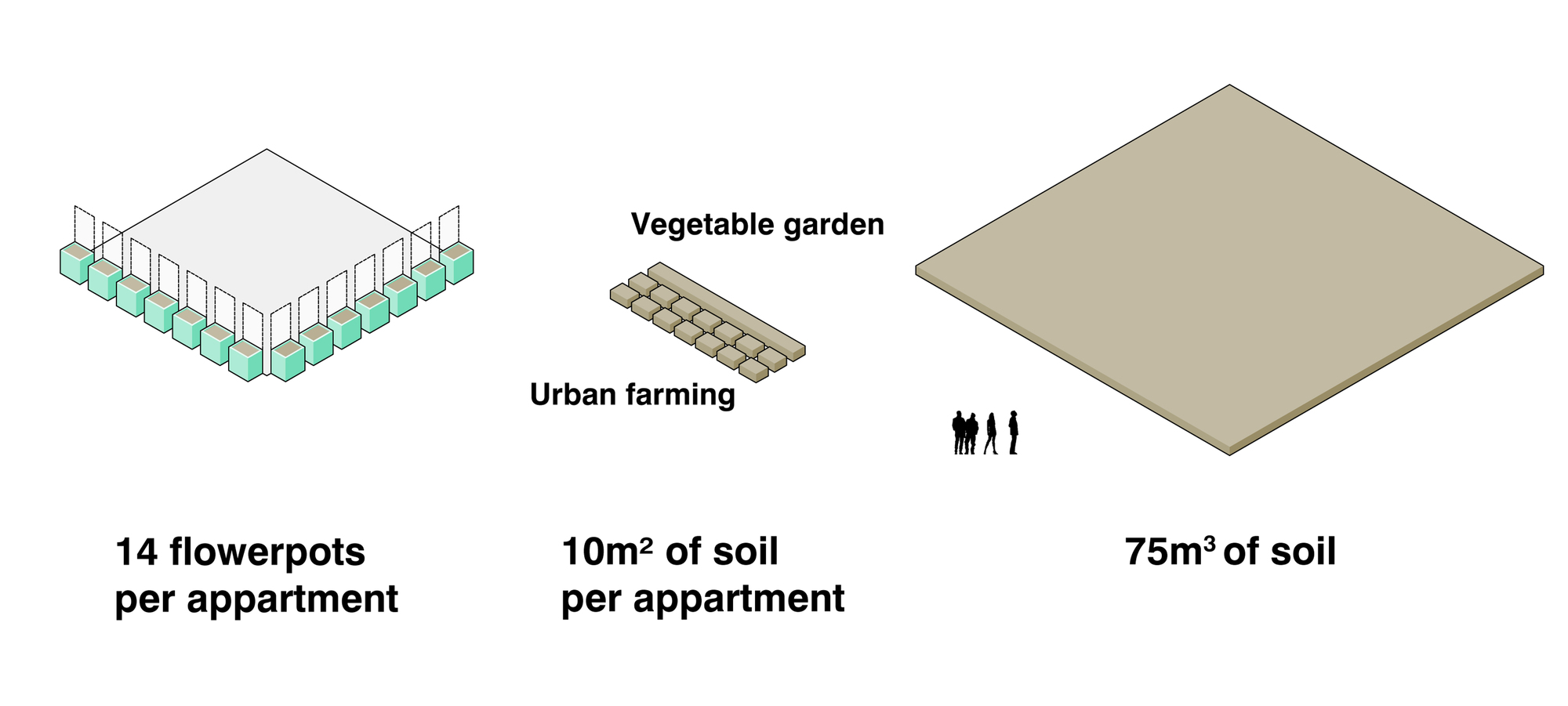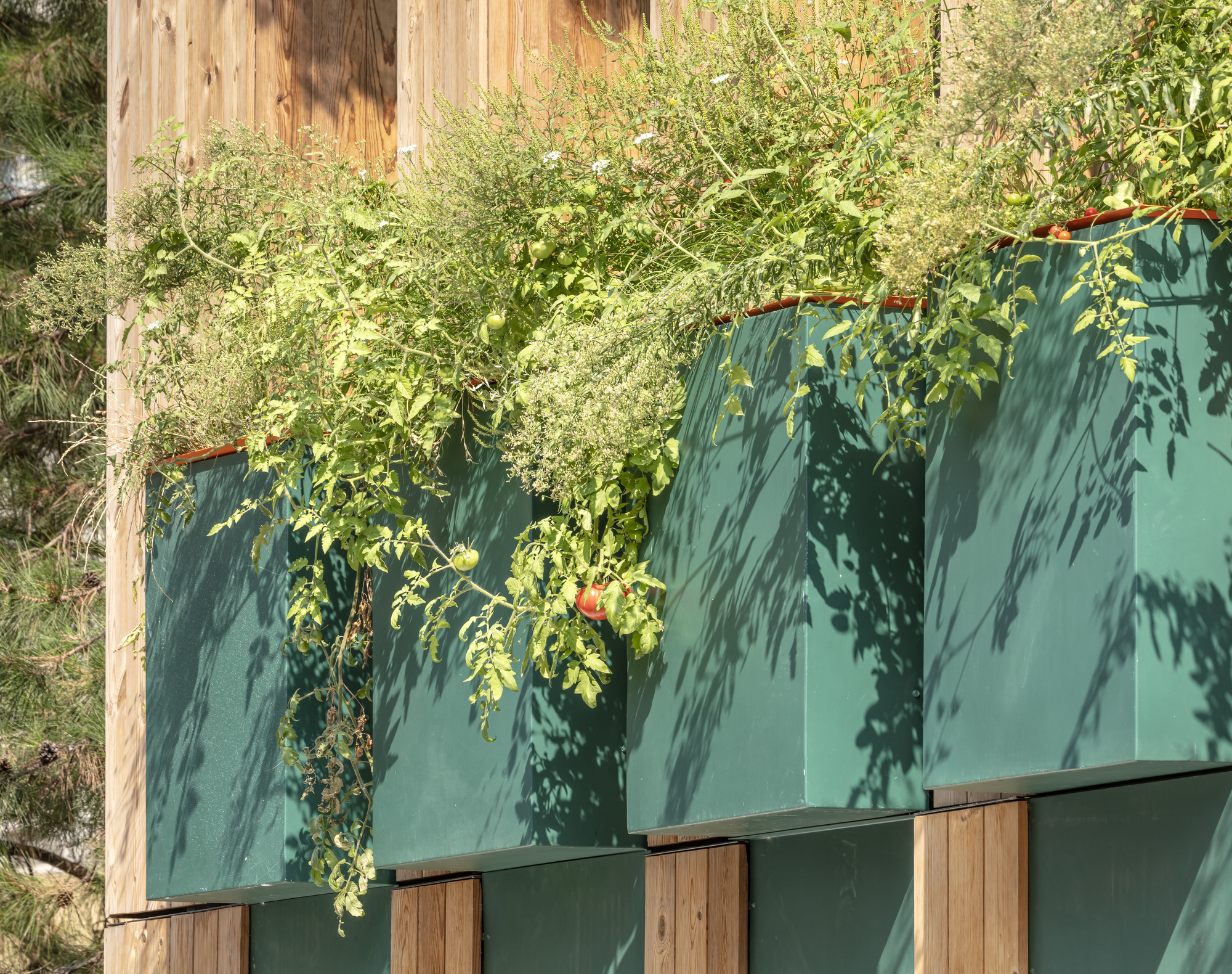 These plants have had time to establish themselves and grow before the arrival of residents. Residents are thereby greeted by an established natural environment, for which they will have responsibility. The project thus proposes a sort of ‘permacultural’ way of life: residents will produce some of their own food, learning the pleasure of watching food grow, a means of encouraging them to participate in the collective effort that we must all undertake to reduce supply chains and move towards a landscape of edible permaculture as near as possible to home.