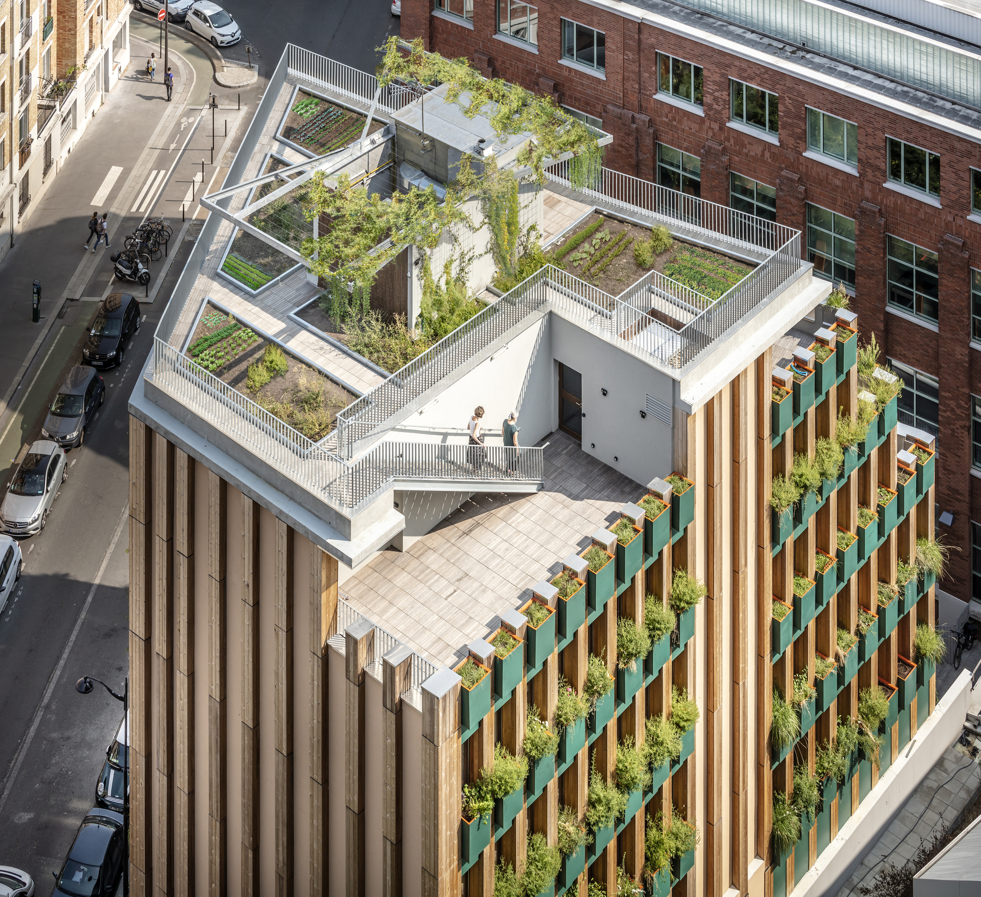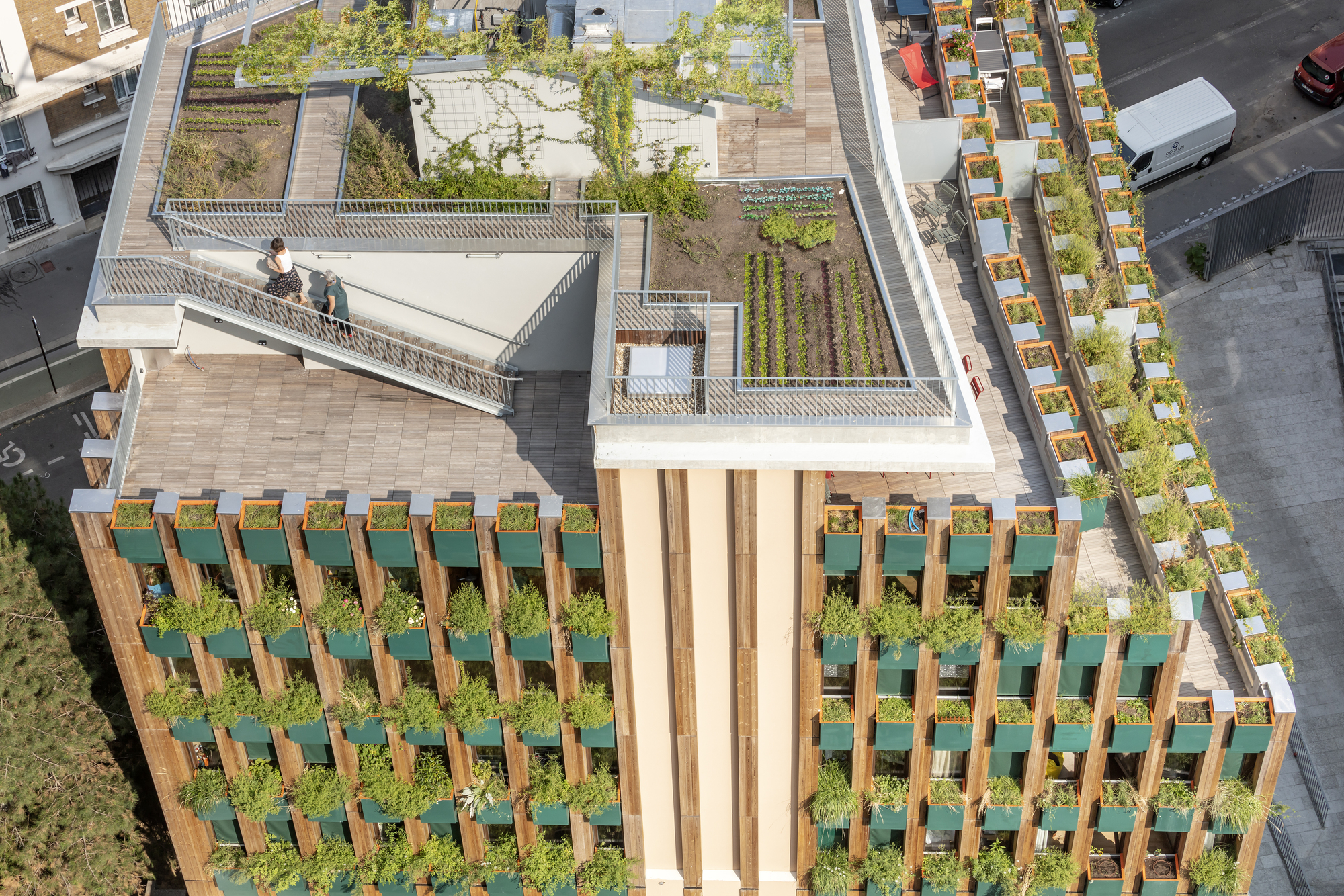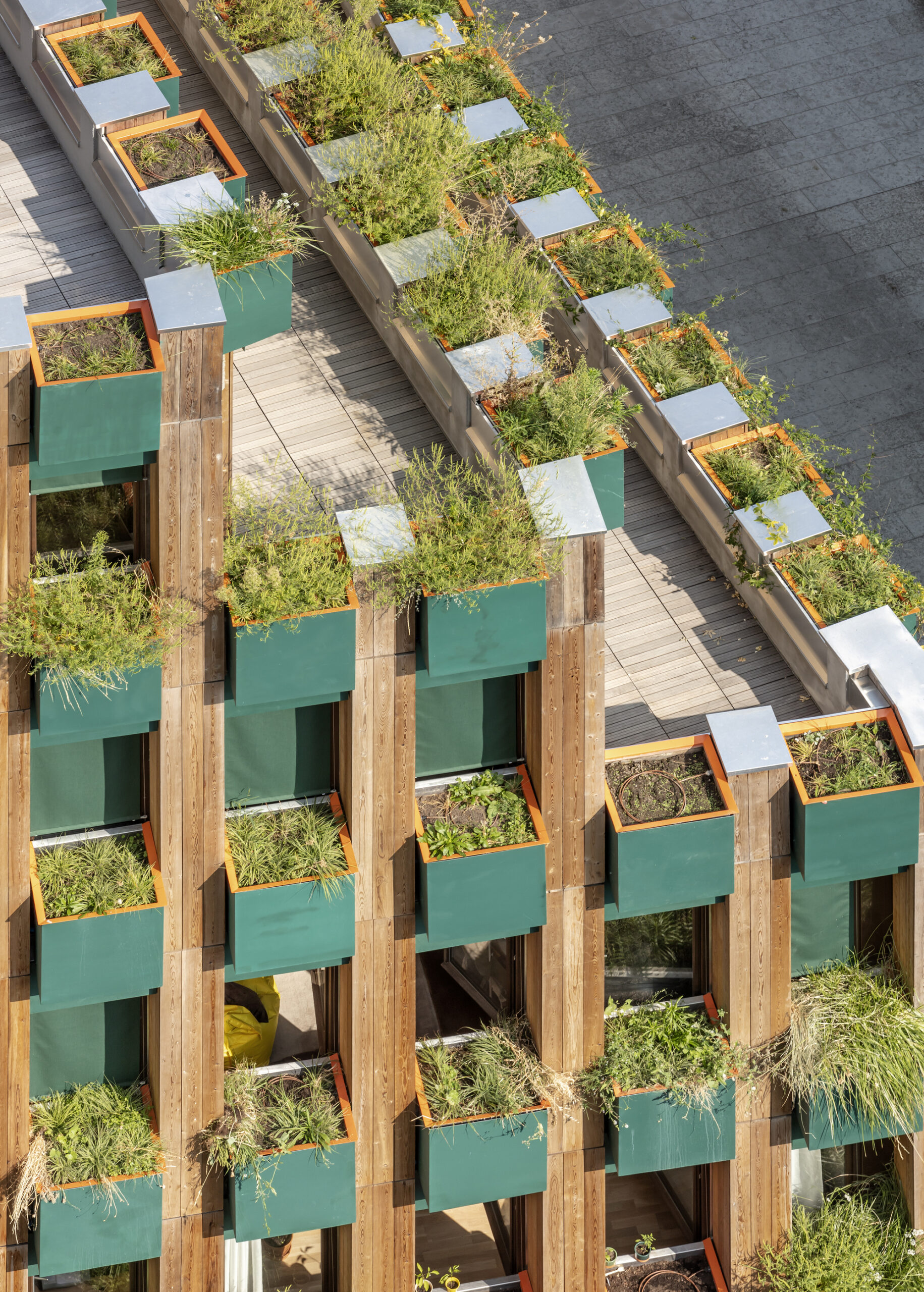 Edison Lite Apartment Building proposes a new housing model, based on three main principles: the creation of ‘made-to-measure’ housing units, whereby the future residents were able to participate in establishing the brief as well as the design of their home; the provision of 20% extra surface area, defined and shared with the residents: this provides access to space and facilities that would not otherwise be available to individual residents; to welcome residents into an existing landscape: largely planted during works, the architectural project includes 75 m3 of soil, divided between 290 planters and a large, 150 m2 allotment on the roof.