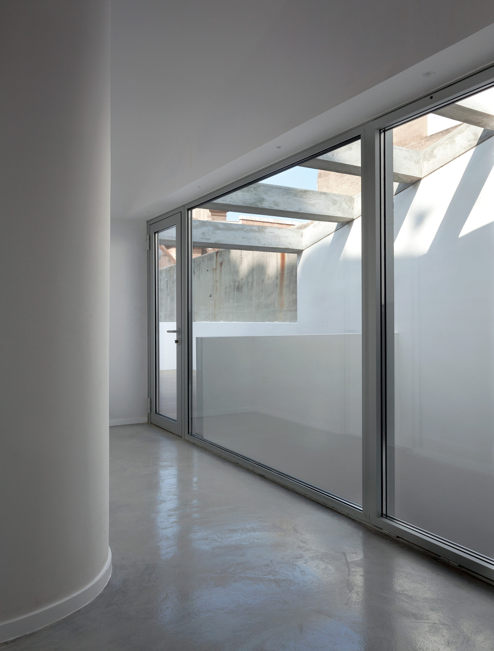 Beside that, some brick walls, with no architectural interest, reflect the Southern sun with some grace. One of the flats is on first floor, while the other one is located on second and third, taking advantage of the sloping roof right in the living room. Both of them are really linked with the environment through some terraces and permeable facades.