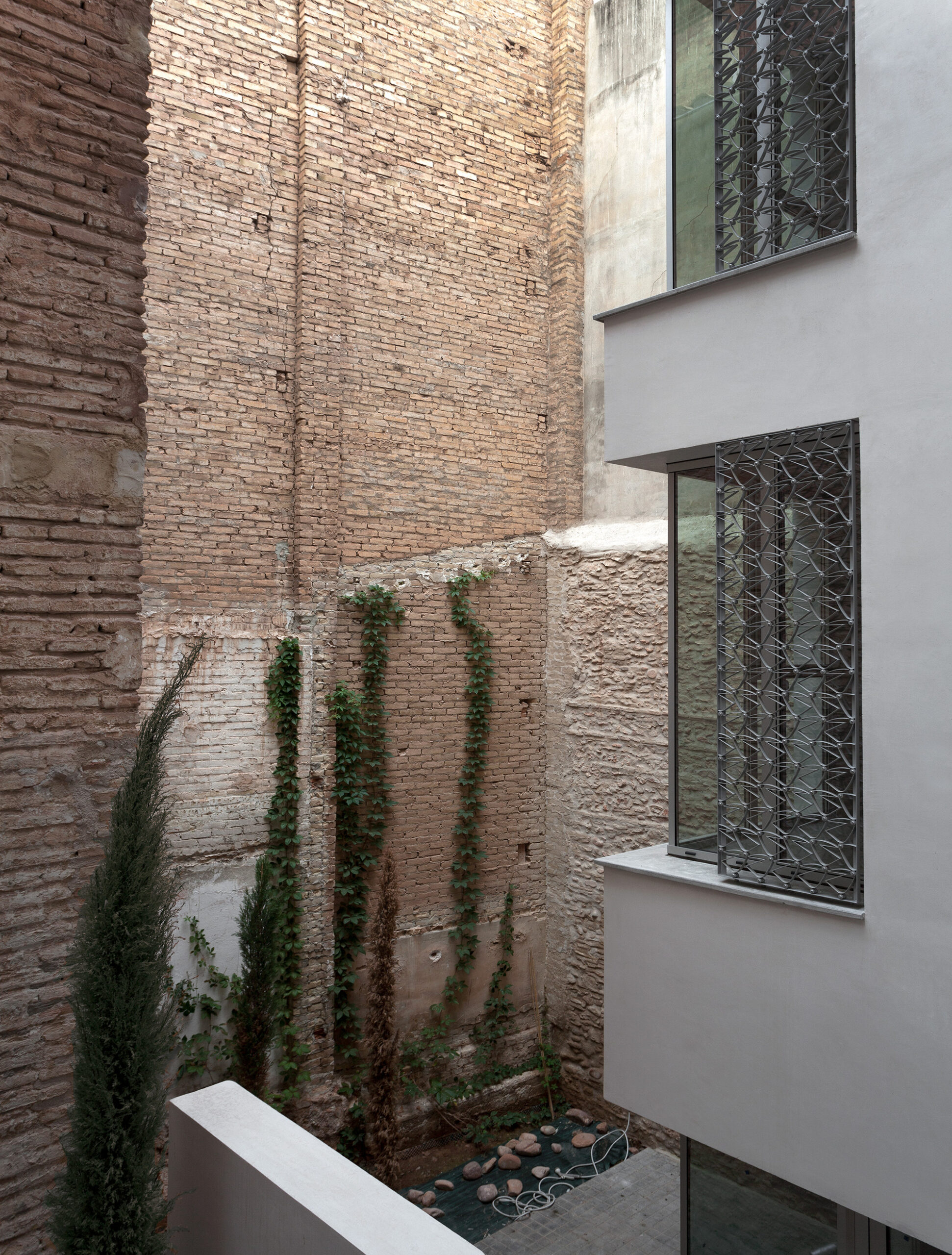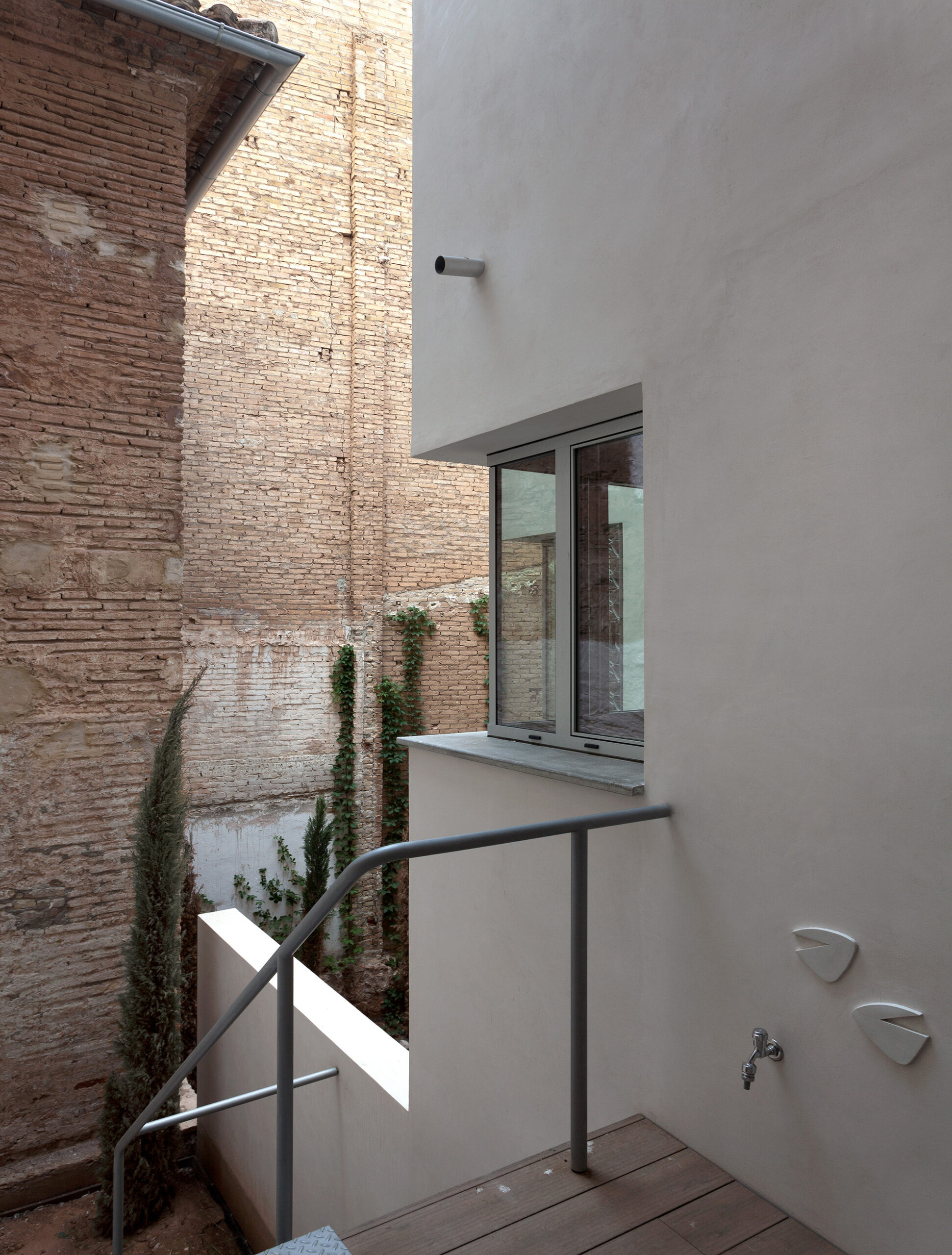 The way the facade is composed is so conditioned by some regulations (Urban General Plan of Burriana, Special Plan to protect the Historical Centre of Burriana, and having the influence of the church of El Salvador, which is Cultural Interest Site), that contrast with the domestic path to the garden, almost in the same way a part of the Capilla de la Comunión invades it, standing in the horizon like a little tower.