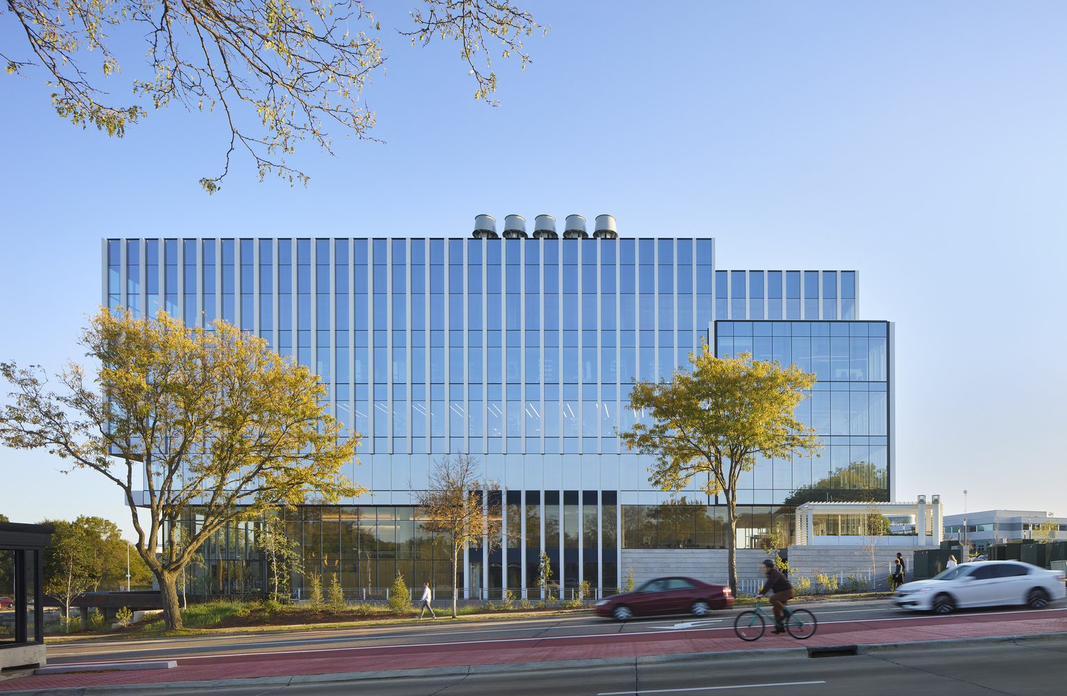 Element Lab’s remaining space will be occupied by R&D laboratories for multiple UW-Madison schools, agencies, and research institutes, including a 2,500sf BSL3 laboratory. All told, the project creates opportunities for an immersive experience in the landscape for employees and visitors, highlighting the site and building as a gateway and reinforcing the entry experience to the University Research Park.