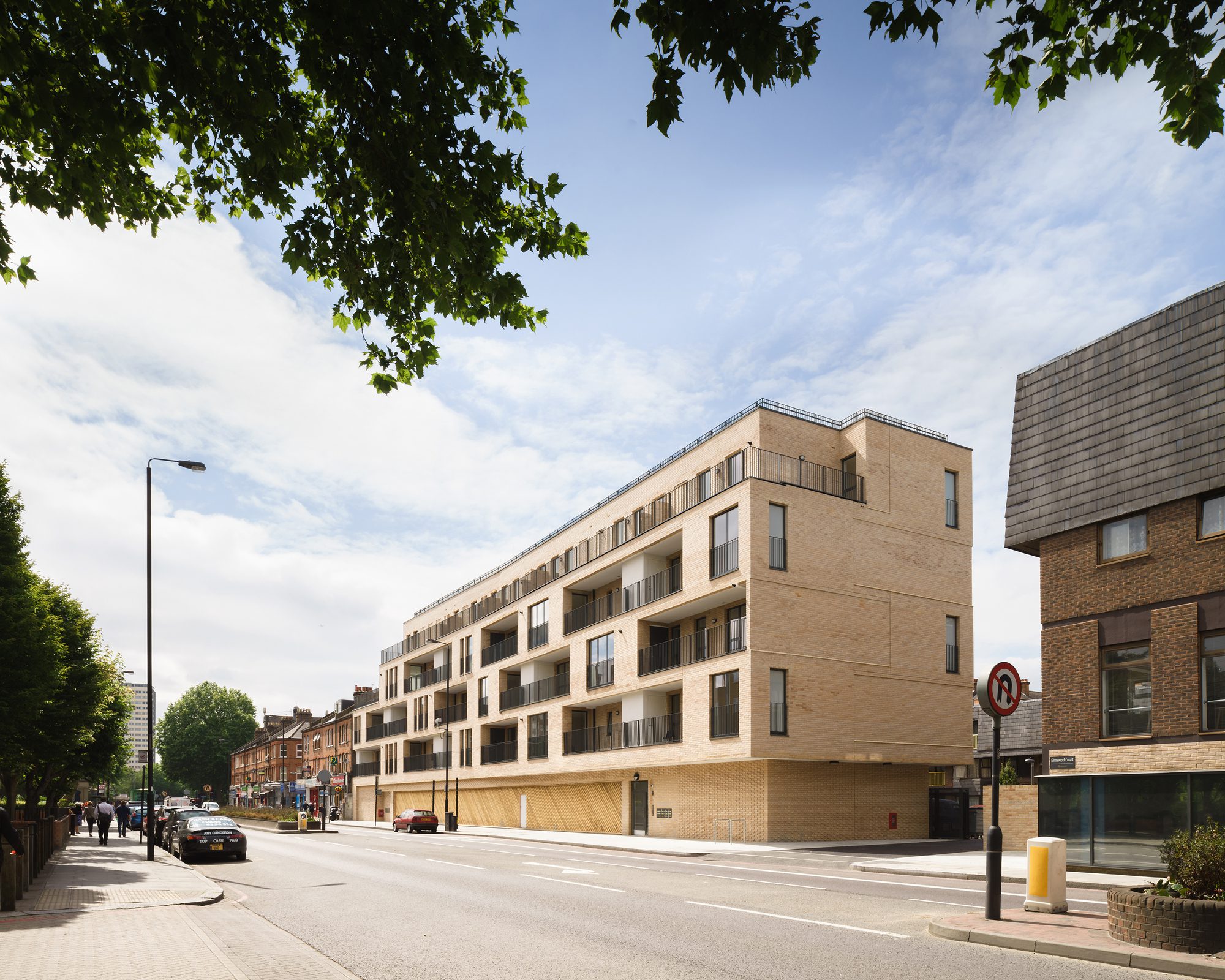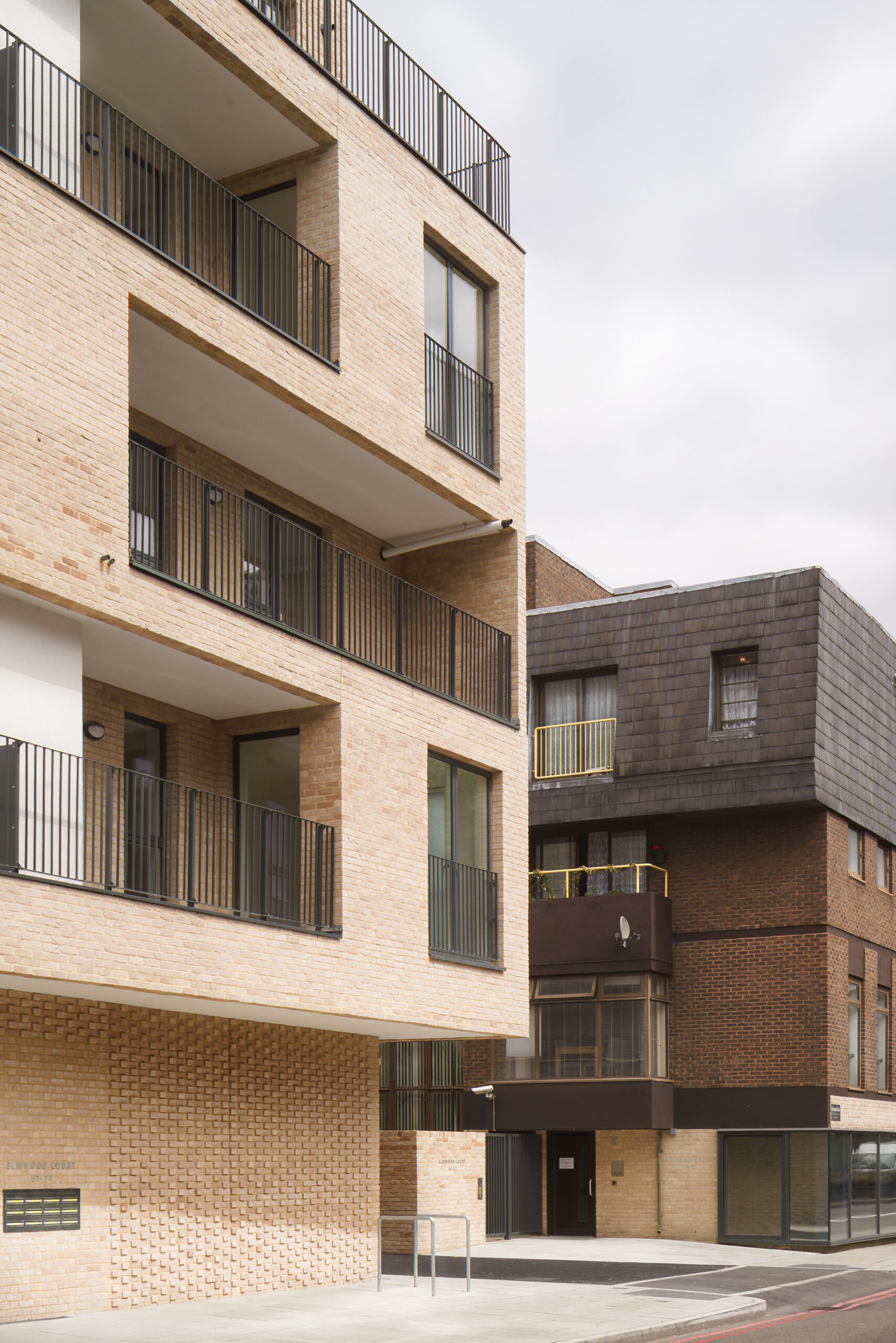 Elmwood court is a 5 storey, 22 unit affordable housing scheme for Peabody in Battersea, London. The building is situated on an open, underutilised car park within an existing Peabody Estate. The new residential block continues the land-use pattern of the remaining Victorian terraces along Battersea Park Road, with ground floor retail and housing above.