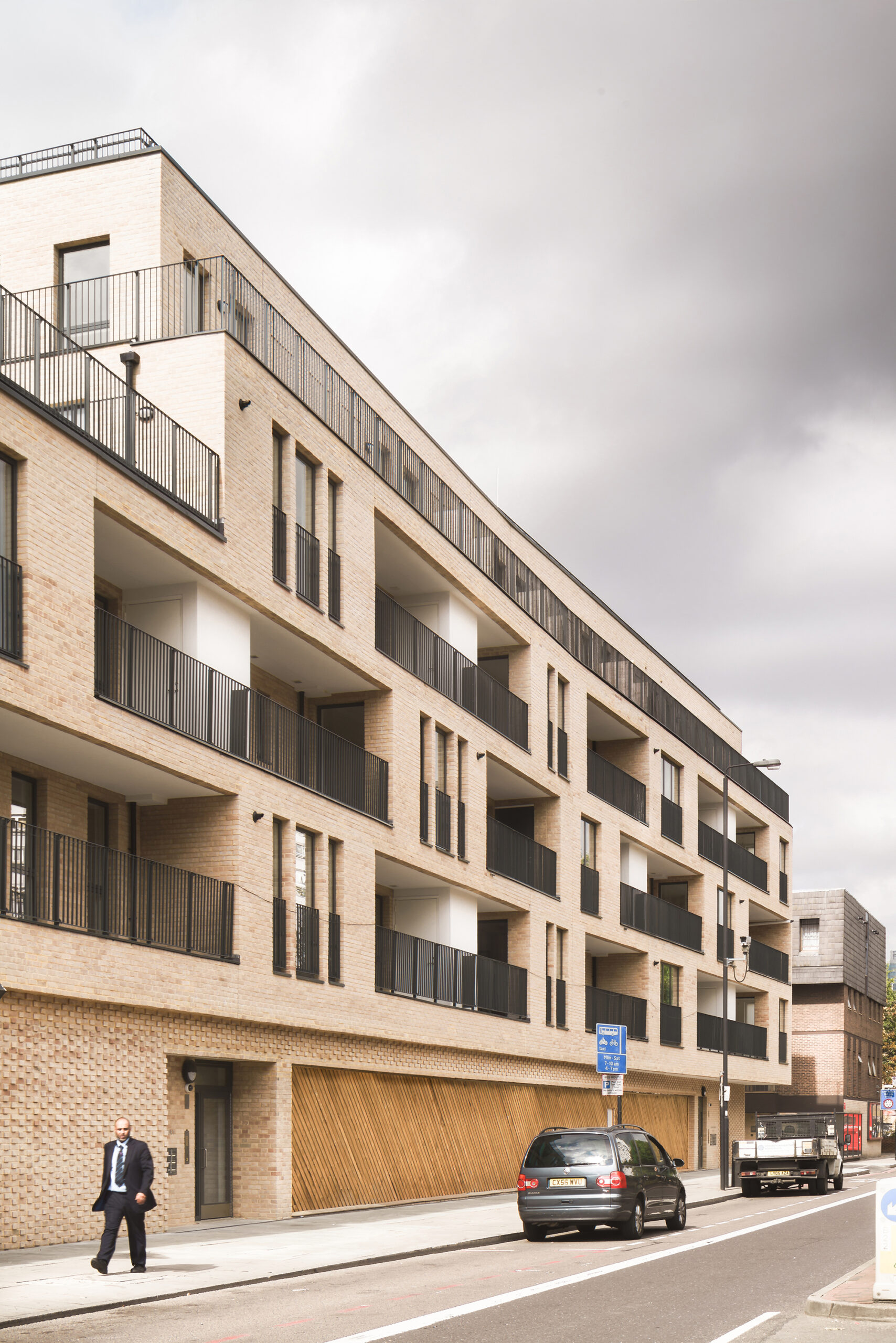 Extensive façade studies concentrated on minimising maintenance whilst trying to maximize daylight penetration for all rooms and offering bedrooms additional privacy from the street. This was achieved by using full length inset balconies to provide a buffer space between the road and the bedroom windows. Full height windows are used throughout the scheme to maximise daylight.