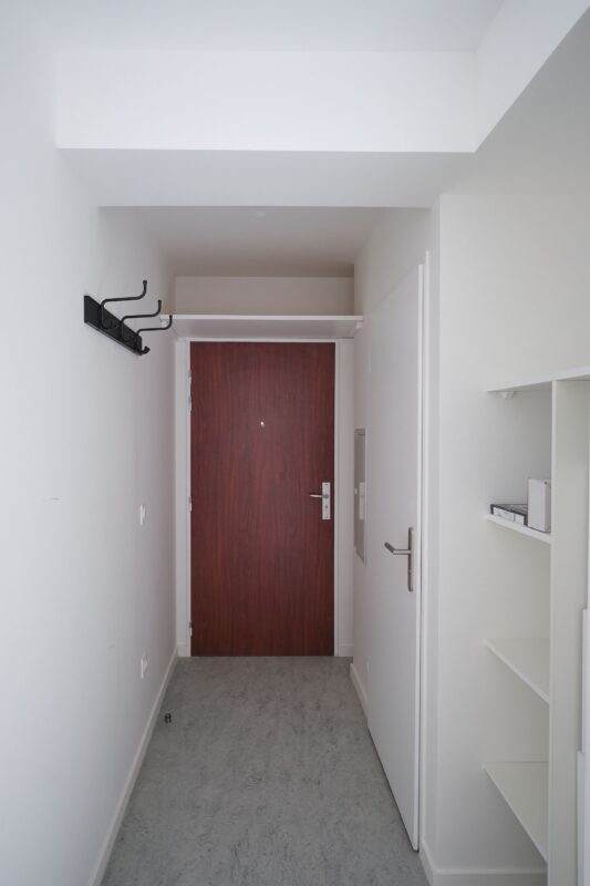 User-Centric Interior Architecture – The building’s flexible plan and organization are designed to offer the best possible facilities for the daily life of Emmaüs community members, namely, thanks to the extreme simplification of upkeep requirements. The selling floor, which benefits from a broad window onto the street, is designed to benefit from double exposure and to be as large as possible. The environment in the upper floors is first and foremost intended to be practical and sociable for the Compagnons and temporary guests. Flats are organized around a central corridor benefiting from natural light and providing access to 9 flats of equal floor area, except for one, which is larger and accessible to people of reduced mobility. Bathrooms are generally arranged around a circulation hub to allow for the alignment of the living rooms with the façade.
