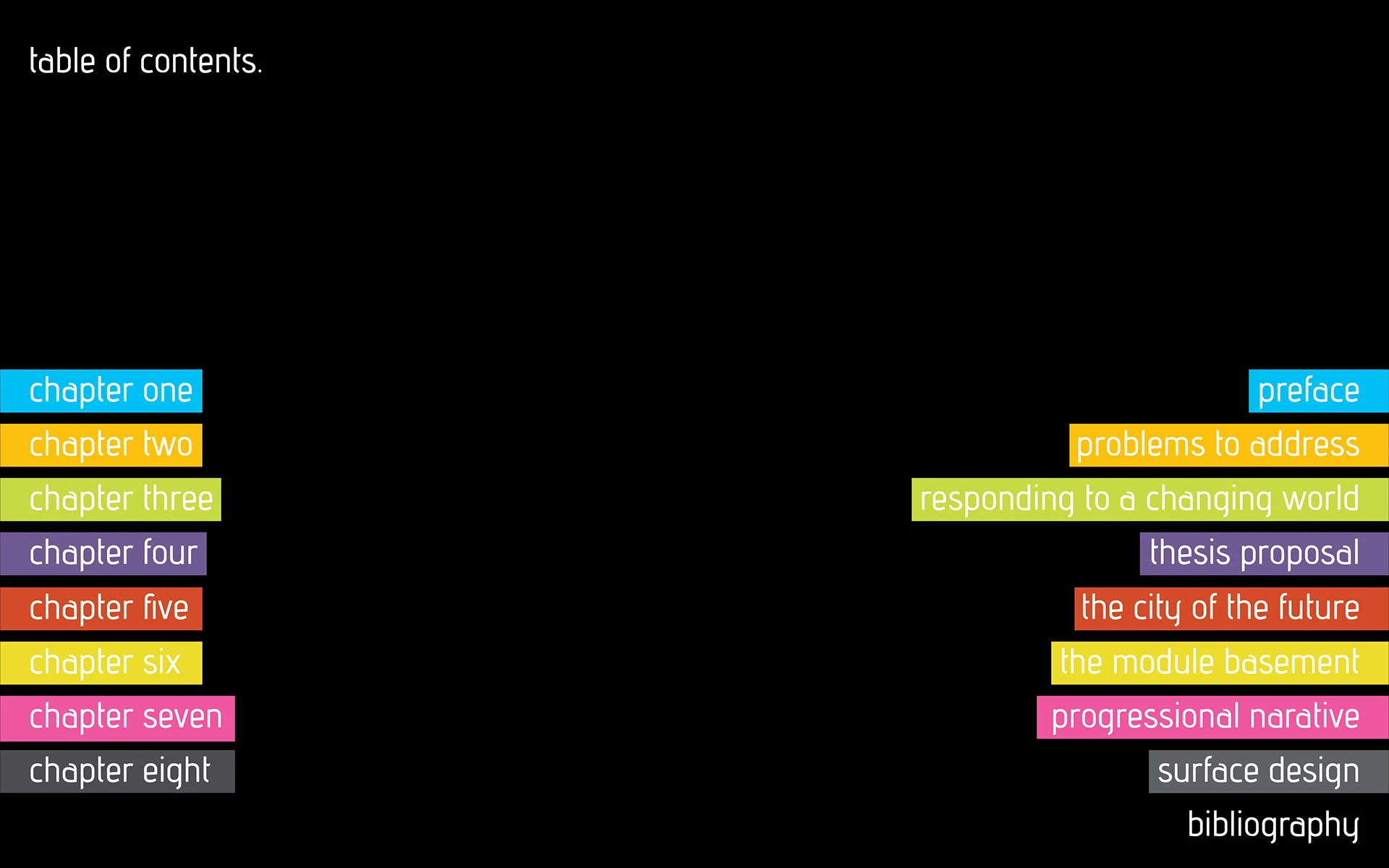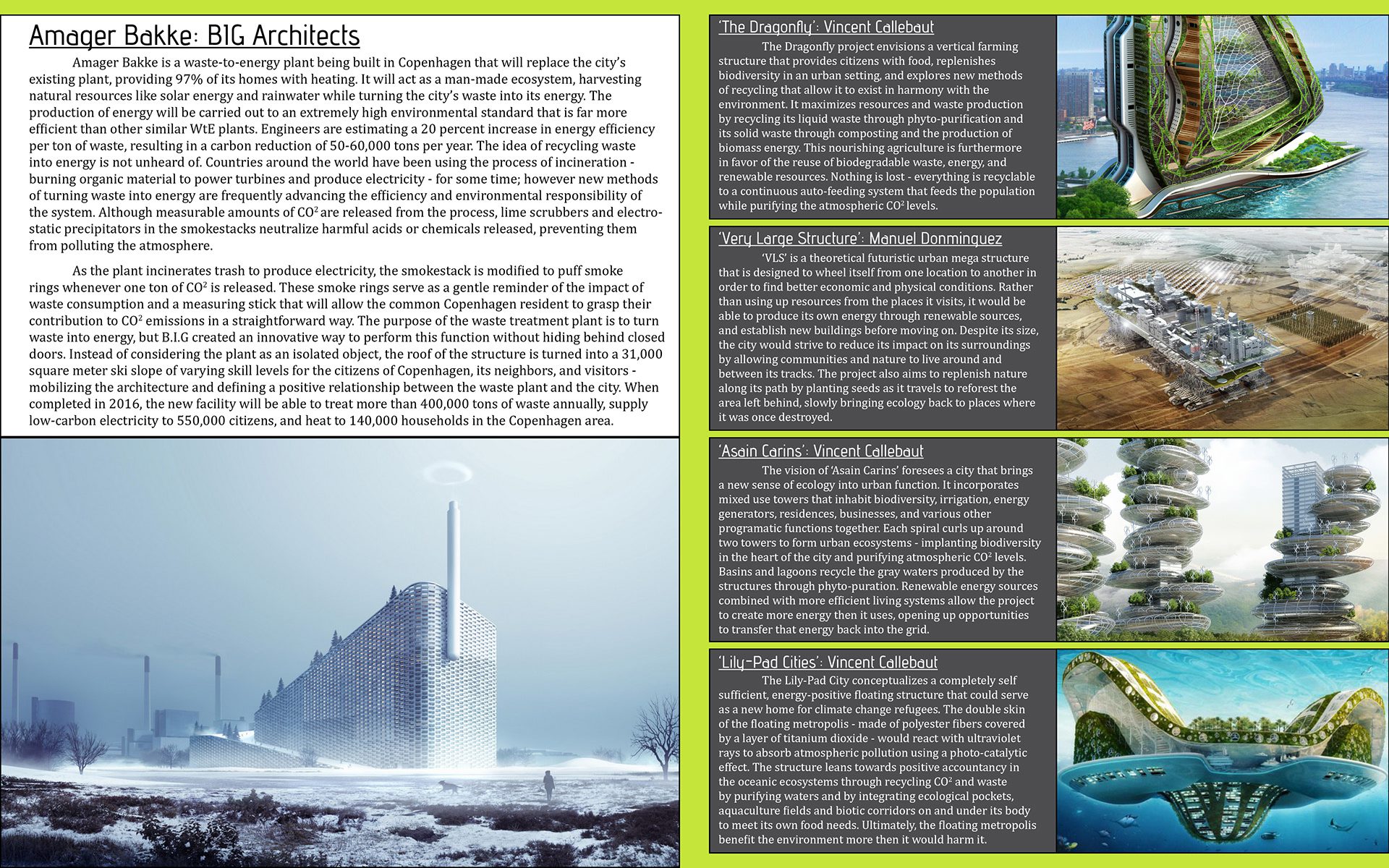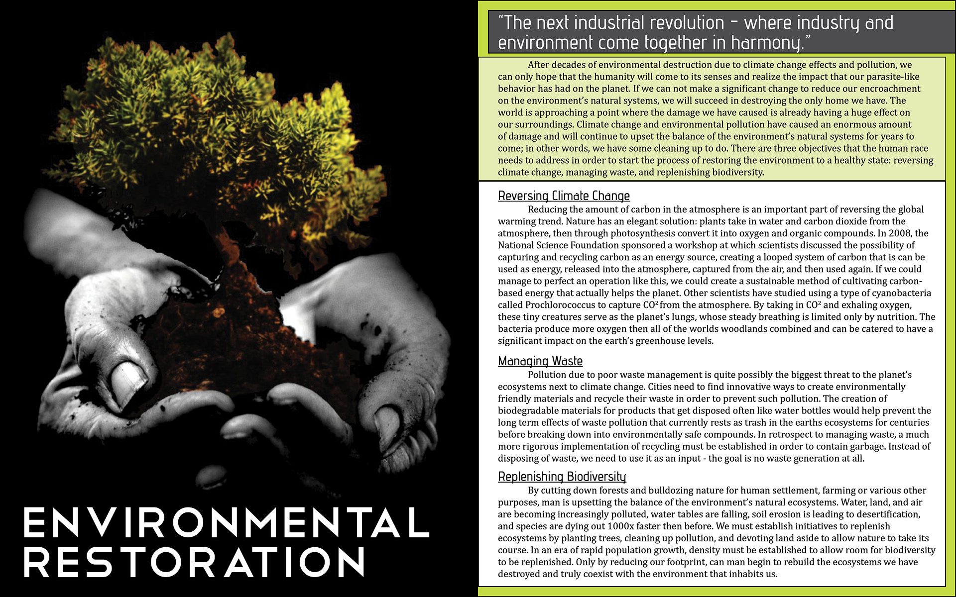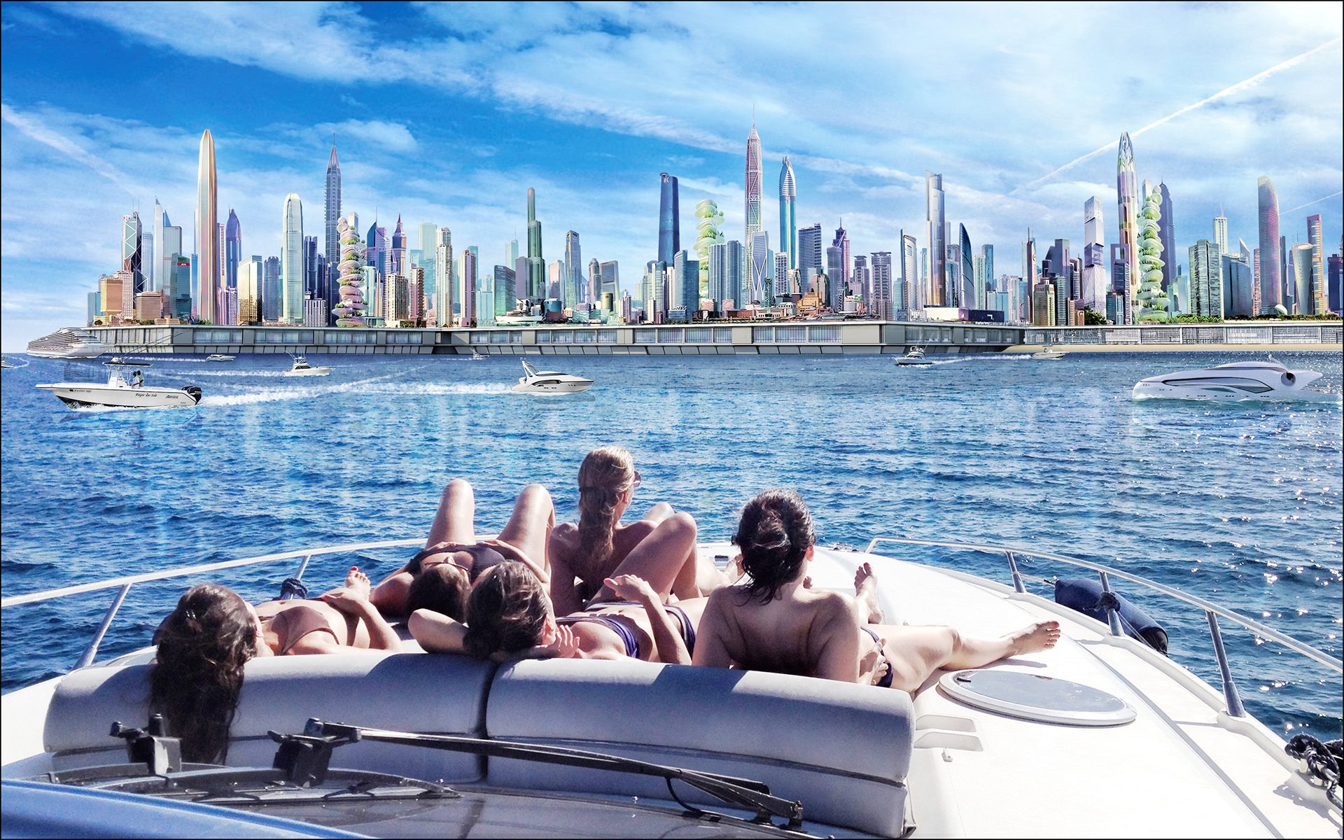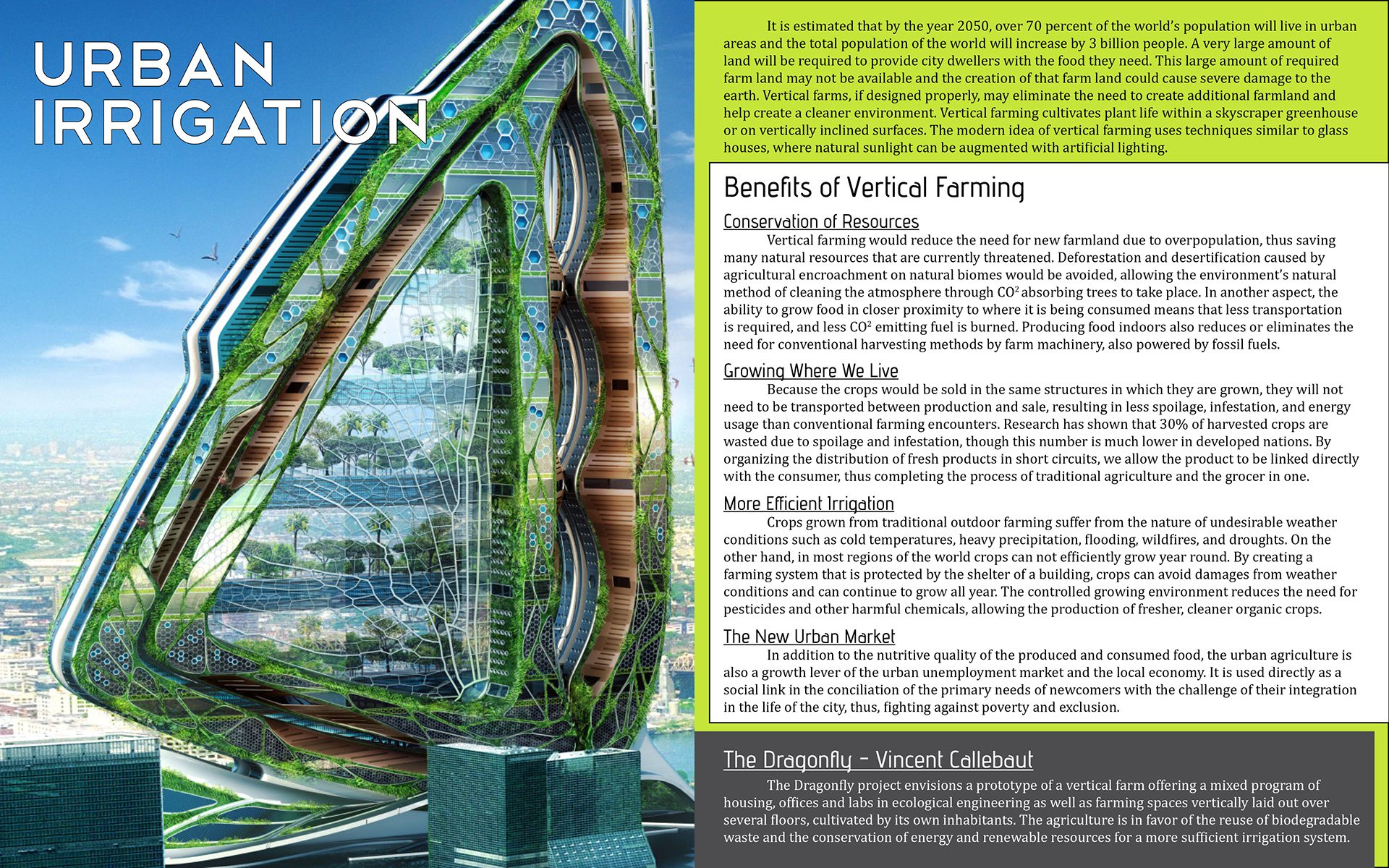 After first analyzing the potential roadblocks that face tomorrow’s cities, and then reactions created to solve those problems, one can make assumptions about the direction that the future of urban design is headed towards. The goal of this project is to do just that. This thesis will imagine a futuristic setting based on predictions made by scientists and architects to develop a vision of a new urban realm that responds to the anticipated dilemmas of the forthcoming generations for a more efficient and environmentally friendly society.