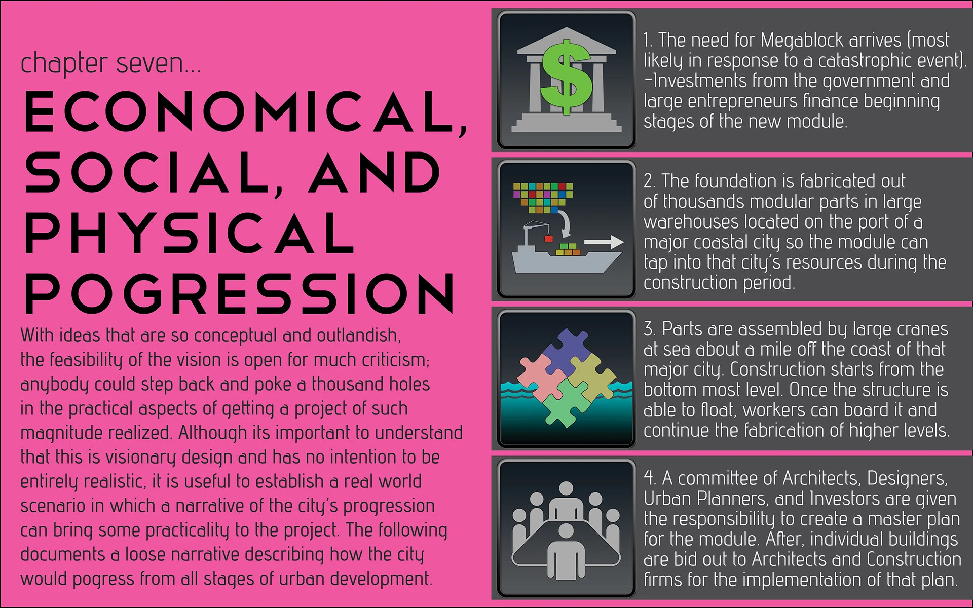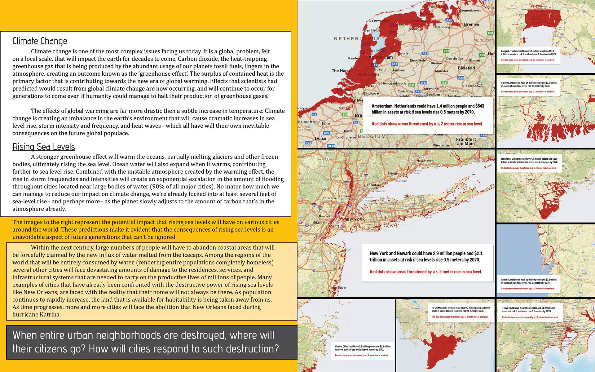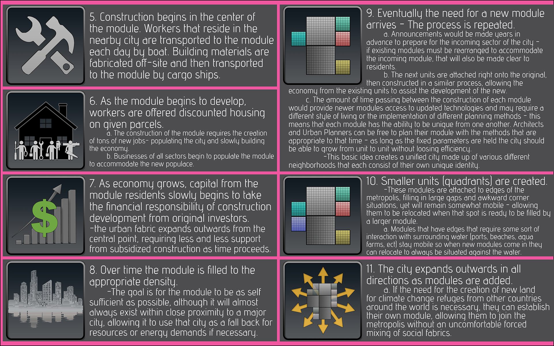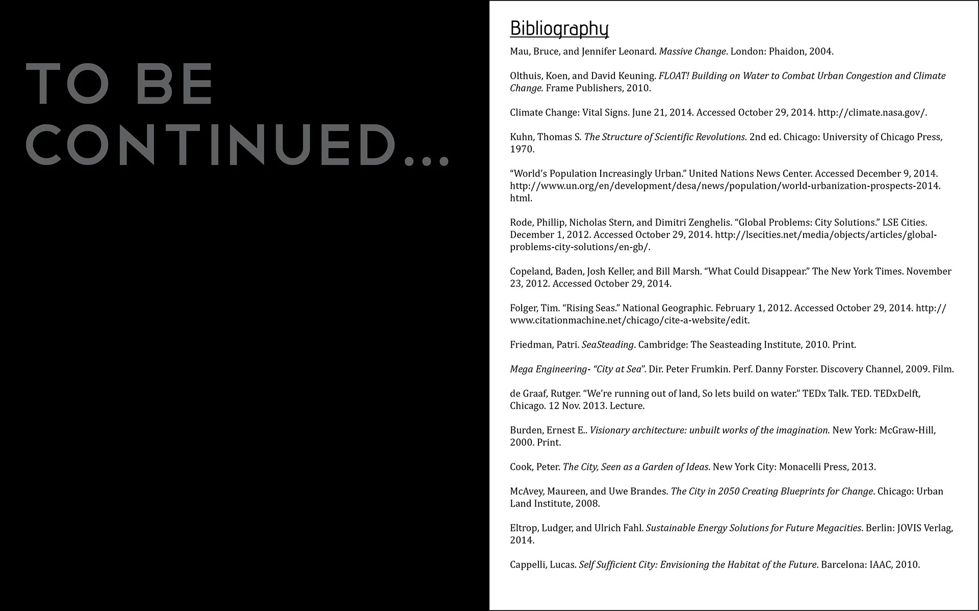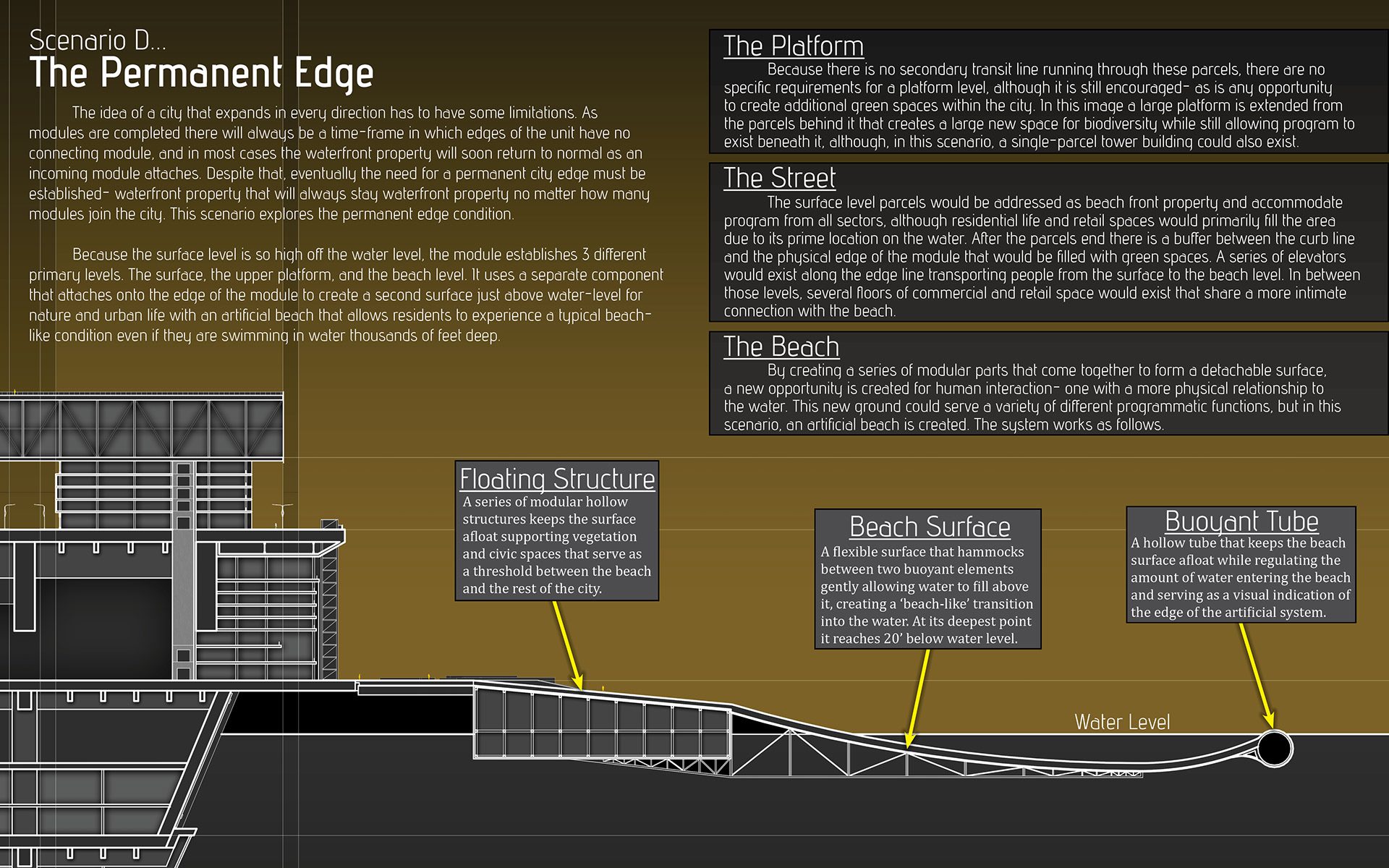 I spent almost a year researching and designing every aspect of the proposed city from the mechanisms that allow it to be buoyant to the organization of transit and streets and even the systems that supply the city’s energy, water, food and waste necessities. It is not just a floating platform with life on it- it is a visionary city that encompasses every aspect of urban life to create something that strives to be truly better than the contemporary situation.