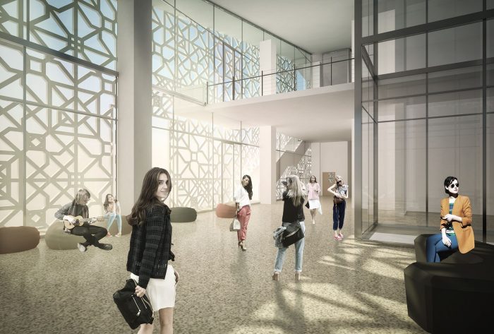 Both clusters revolve around a specific facility which is more open to the public: the visual arts cluster develops around an exhibition gallery while the performing arts cluster concentrates around the auditorium and the above ground “theatre”