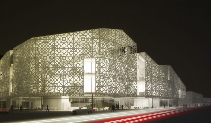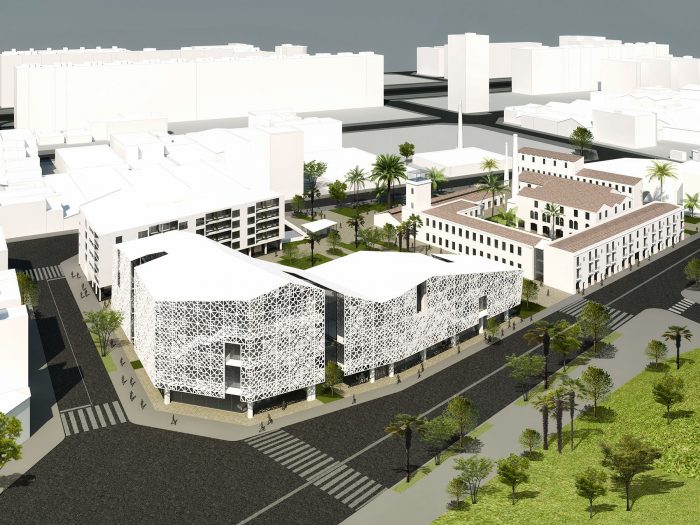 It’s proposed an art centre which is distributed in two clusters: a visual arts cluster located within the factory signalling the existence of the old studios, and a performing arts cluster located in a new building which is well balanced within the surrounding industrial urban tissue.