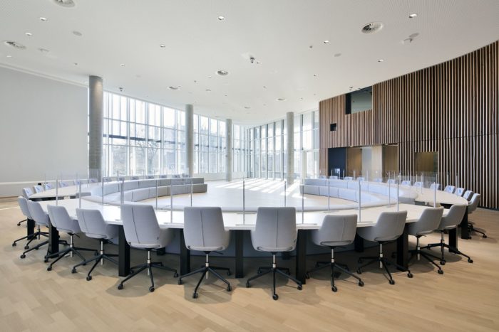 The administrative building serves as the new City Hall of Etterbeek, housing the Public Social Action Center of Etterbeek and a local police station. Its unique design envelops a public plaza anchored by a graceful cantilever that introduces us to the heart of the project—a grand double-leveled lobby. This lobby, acting as a central hub, seamlessly connects visitors to all functions within the Etterbeek City Hall. The strategic layout ensures quick and efficient guidance from the front desk to the required services. With independent access to all functions, the building offers a flexible and adaptable environment for the future.