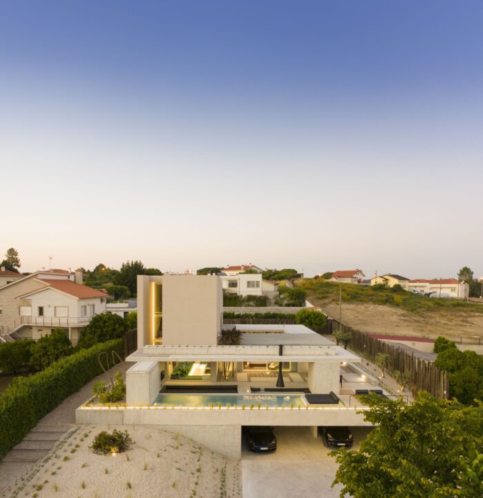 “A downward topography gesture facing west, contemplating the valley underlined on the horizon by the Serra da Estrela and Caramulo mountain.” That’s the scenario in which this project emerges, in a sequence of overlaid volumes insuperable in its monolithic character, but still permeable within, defining exterior spaces intrinsic to the indoor space.
