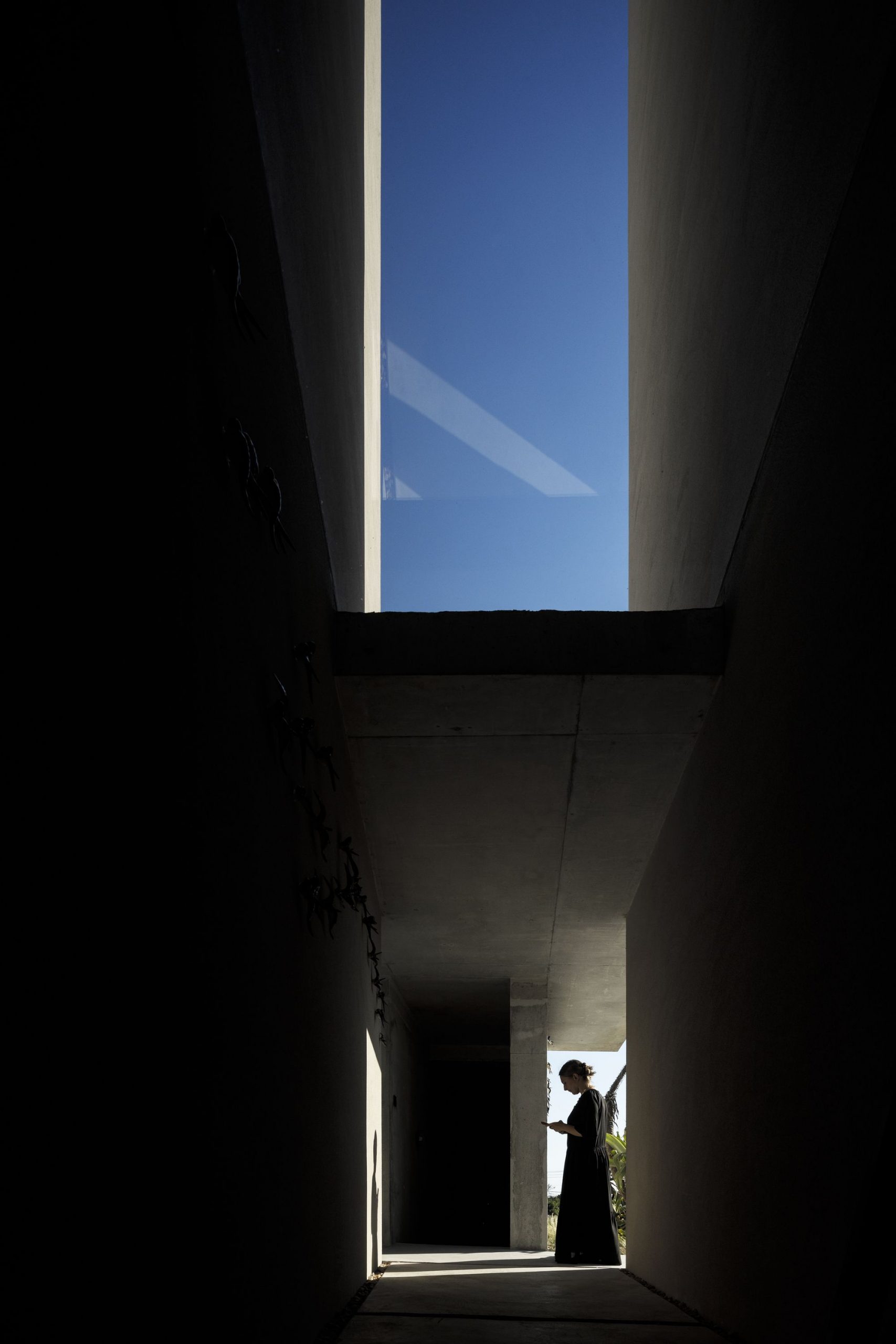 The concept guideline revolves around this frame whose geometry was homogenized in a single mass only to be opened in a thin vertical gap, highlighting the entrance.