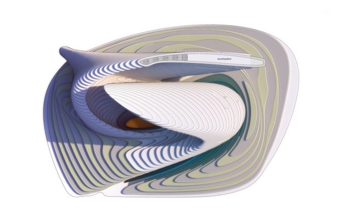 EverREST, by Simon Takasaki, was designed in 2011 for a competition calling for a landmark in Duhamel, Germany. I think what is very poignant in this project is how much we miss as architects if we only ever look to the distance for inspiration. The idea for this project’s construction could have been sitting on any architecture student’s studio desk. Perhaps it is the fact that we’ve made the art of stacking feel cheap with all of our default ‘stacked chipboard topo models’ but the process just doesn’t seem to be used very often. And this doesn’t apply to brick or stone- that’s different. Those are stacked in a two dimensional way, only striving to make a wall. When we build topos we stack to make a form. Why can’t we do this in buildings? No reason, we have the technology. We can build them better than we did before.