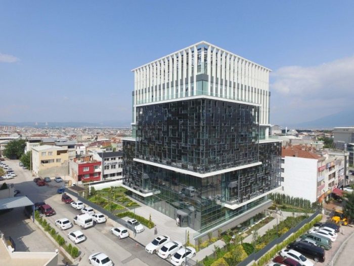 The EWE & Bursagaz Head Office building is the headquarters of a local natural gas distributor located in Bursa, one of the biggest cities of Turkey. The building has a 820 m² of plot area and approximately 9500 m ² of building area. It consists of 7 floors and 3 basement floors. The offices are officially opened to use in May 2016. The architectural design is based on integrating renewable energy systems to architecture meeting the expectancy of a prestigious headquarters building of the client. The project is also based on building up a positive relationship between these energy saving systems and office life.