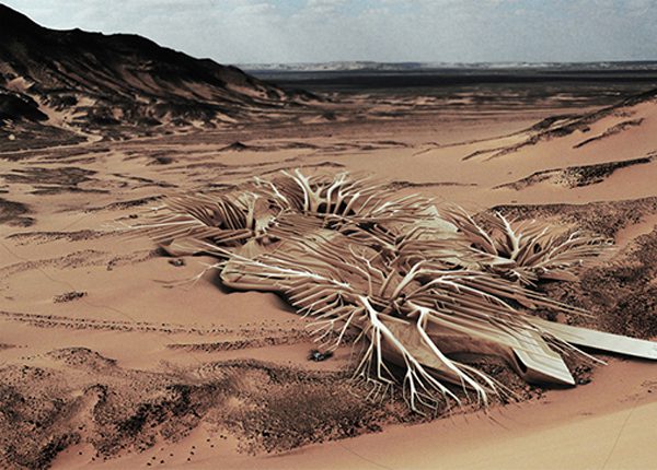 Further on, structural elements functioning as shading systems and an overall structural framework of the building are added. Horizontal and underground expansions are also taken into consideration, according to the team. Retaining walls for protection from extreme natural conditions are added, and also openings for light intensity control. DuneLab have also created an artificial landscape that is in contrast with the natural setting, however it speaks for integration between the building and the overall landscape.