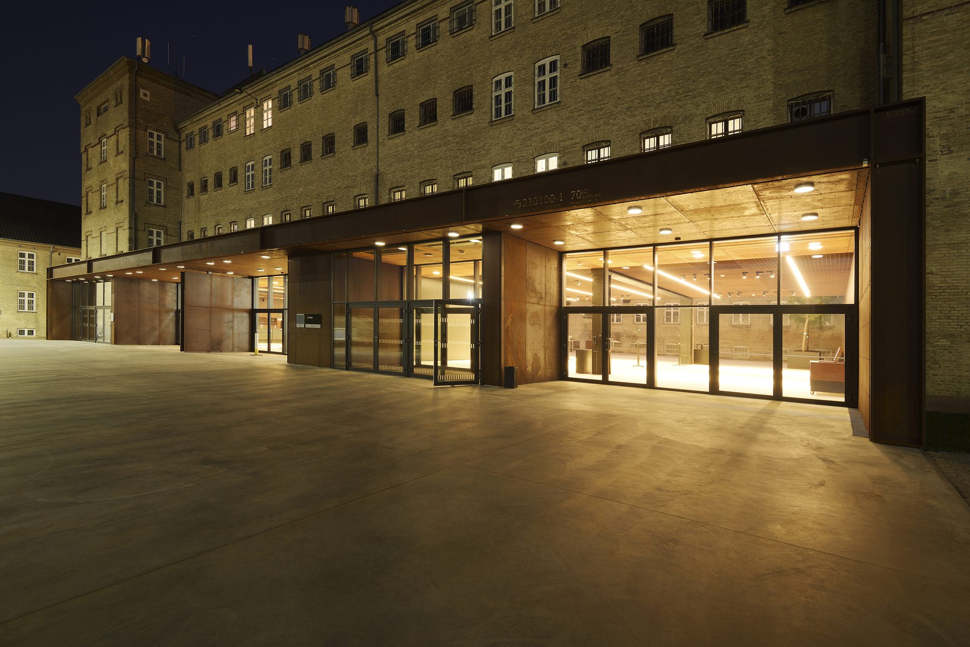 In order to create and integrate the West Hall smoothly in the large building, Cubo Arkitekter has seized a rather audacious engineering challenge; By undercutting and totally removing two existing floors space was created for inserting a clean-cut ‘box’, that connects the big prison yard with the inner courtyard. The inner yard has been covered with a glass roof and is merged with the open space underneath the west wing to form the West Hall. The undercutting of the west wing is uncompromised and unequaled as the added architecture also appears uncompromising and minimalistic. A simple and spartan expression is pursued in a project, that is anything but simple. The design, which unites architecture with advanced engineering, and the significant connection with the historic prison, makes the project stand out as contemporary international state-of-the-art architecture.