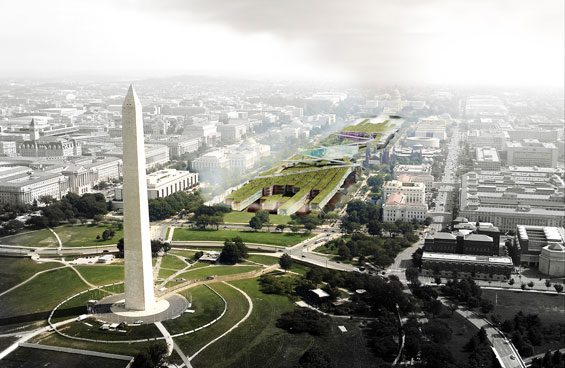This growth has led to exponential sprawl reaching outward into the neighboring states in search for suitable living spaces. The National Mall is one of the largest open spaces still in existence within Washington DC. Since its inception by Pierre LÃEnfant in 1791, a continual source of speculative design projects has aimed at creating a picturesque foreground for the federal edifices that surround it.