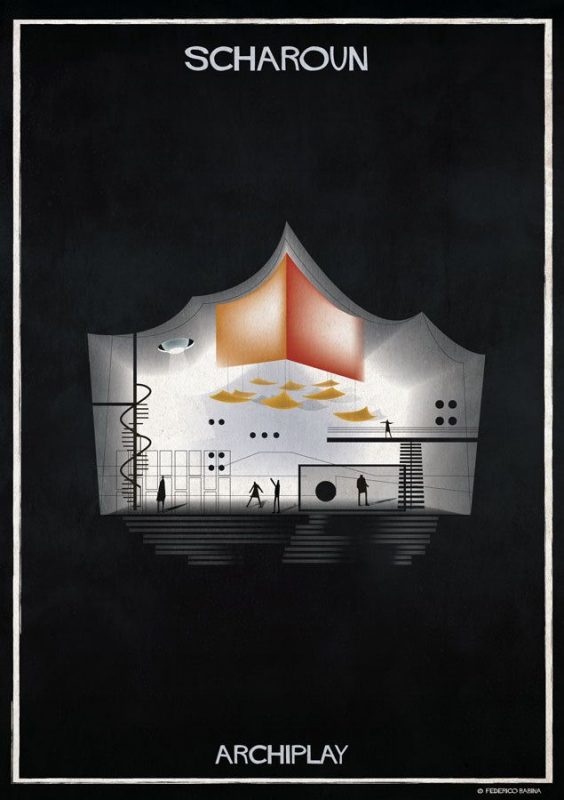 Federico Babina’s ‘ARCHIPLAY’ transforms some of the architects’ famous projects into scenography illustrations.