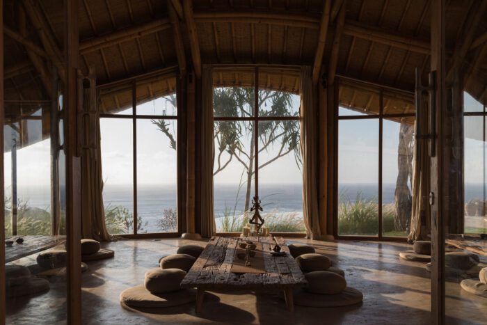 The Fish Tail Tea Room is an integral part of Intaaya Retreat, a project designed and built by Pablo Luna Studio on the cliffs of Nusa Penida, Bali. Conceived as an architectural response to its surroundings, it integrates seamlessly with the landscape while prioritizing sustainability. Every design decision was made to minimize environmental impact—adapting the construction to the terrain and using locally sourced materials.