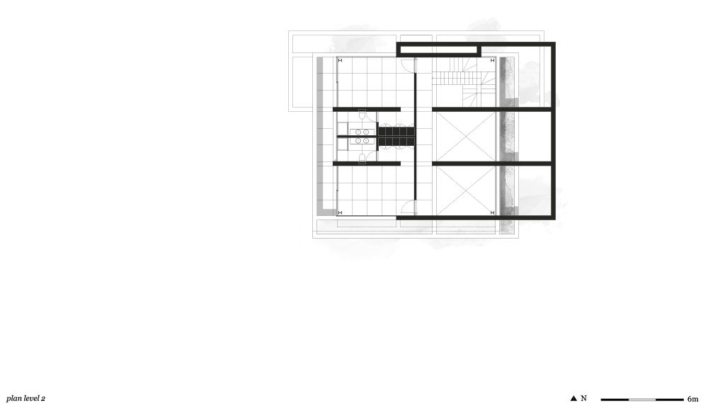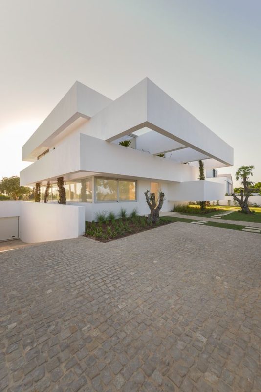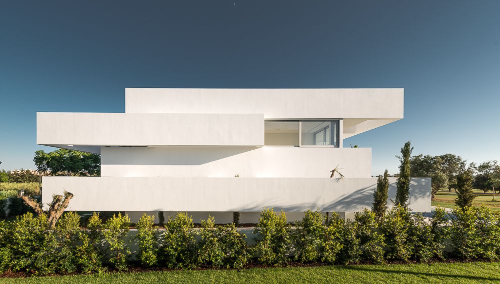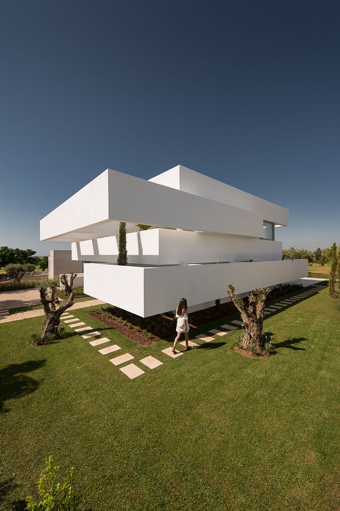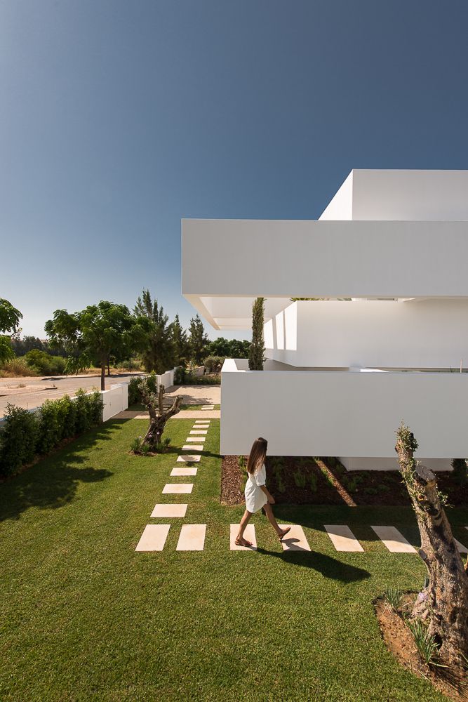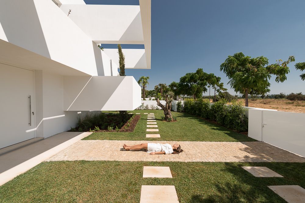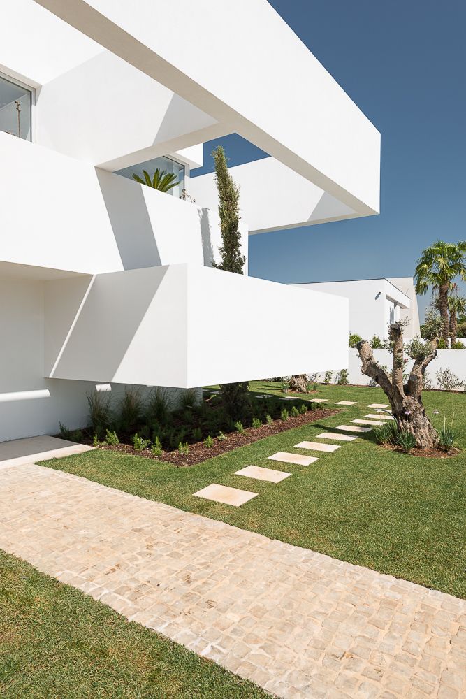 The voids between them create space for human and vegetal occupation, constantly hidden or revealed, formalizing the illusion of an interior garden or an exterior house.