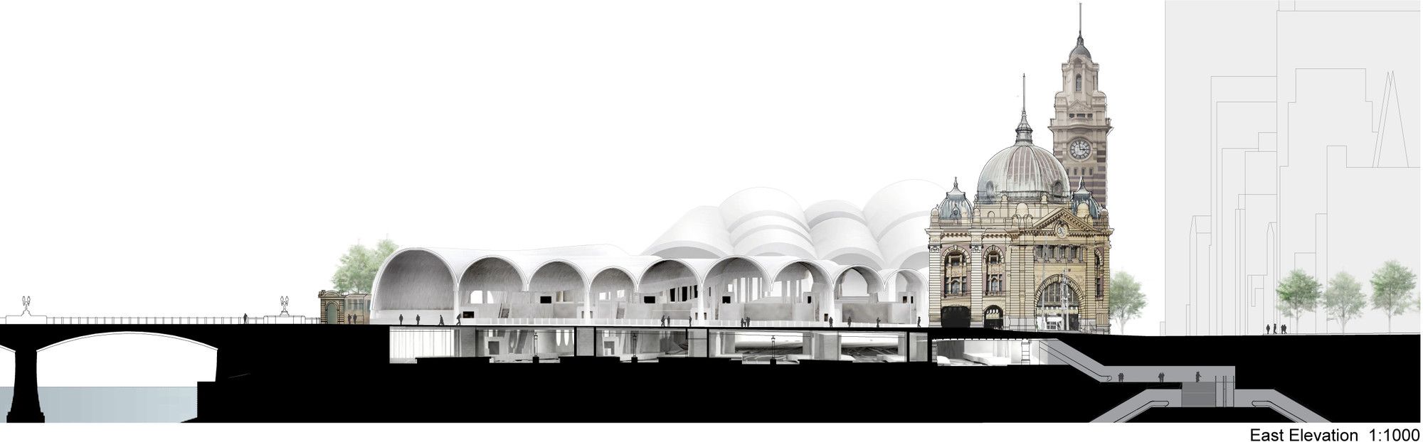 The redevelopment of Flinders Street Station is about much more than transport: It has the potential to revive an iconic Melbourne building, reconnect the city with the river and create a vibrant new center of civic life.Flinders Street Station is both a landmark heritage building in Melbourne and the hub of its metropolitan rail network, with over 150,000 people a day passing through the station.Built to a 19th-century design, the station has been compromised by a series of alterations over the years. To address this, the Victorian Government sponsored a A$1 million international competition to redesign the station for the next 100 years.