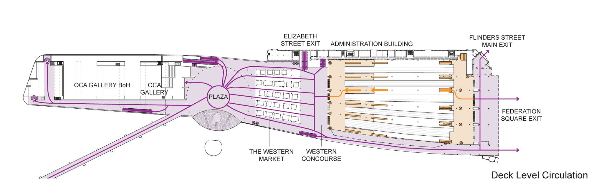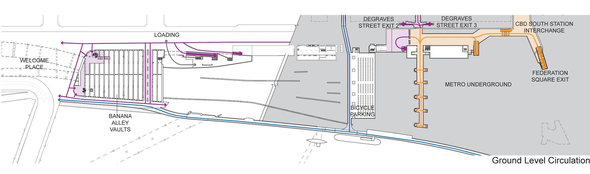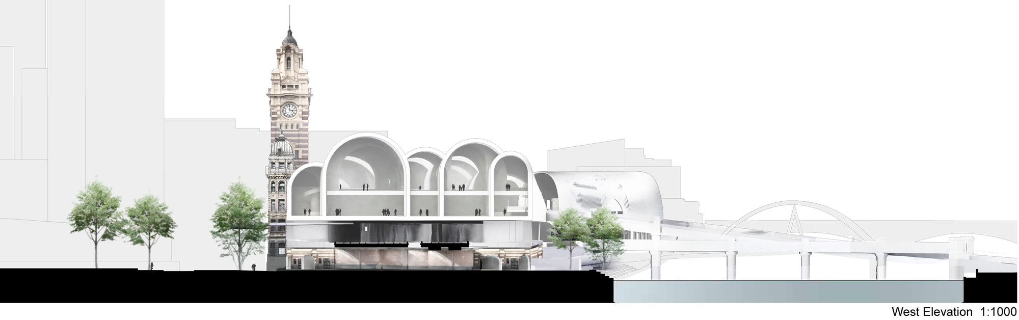 The existing heritage building along Flinders Street will continue to house railway administration, but it will also become offices and venues for the organizations managing Melbourne’s range of arts and cultural festivals.