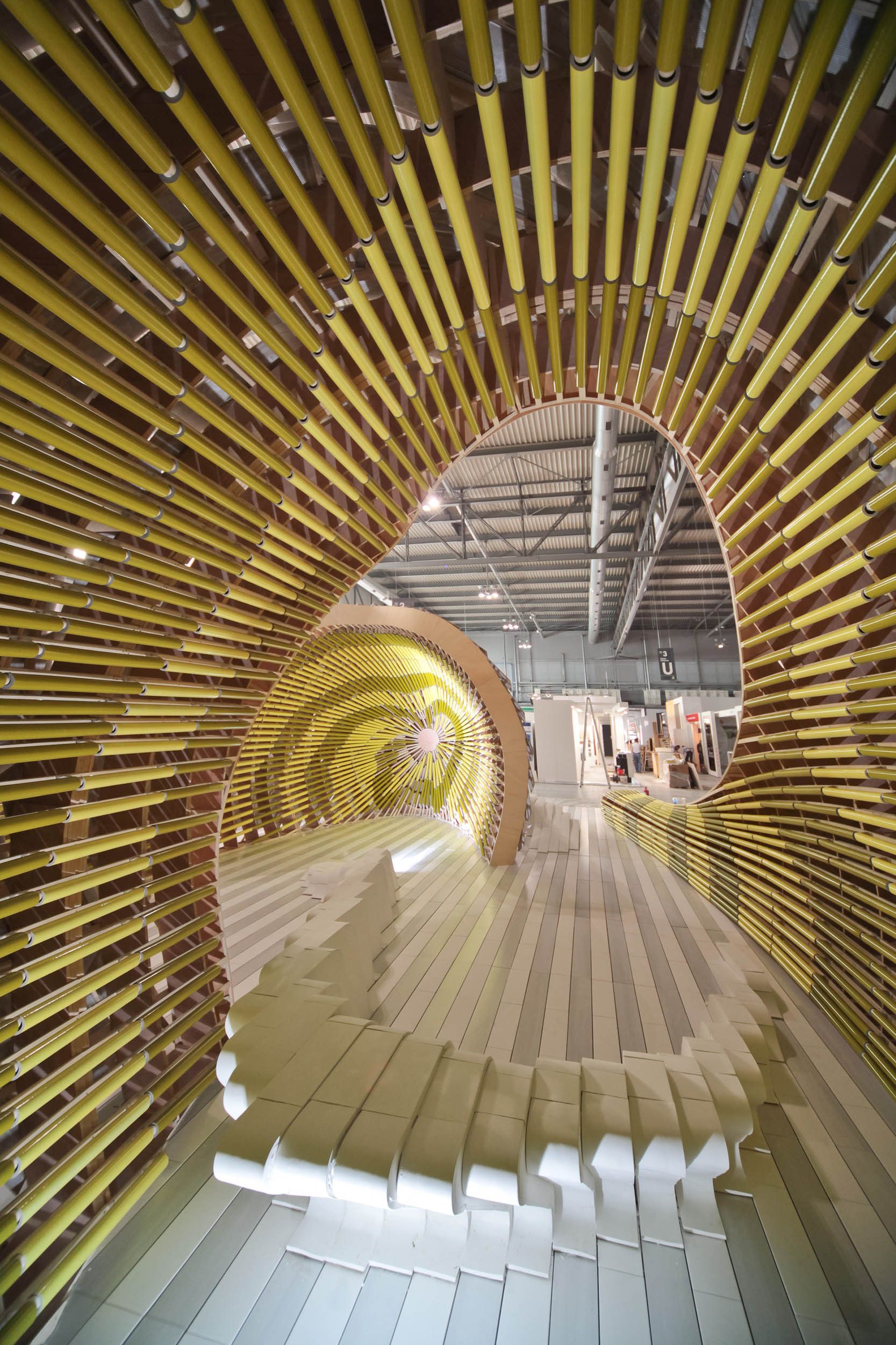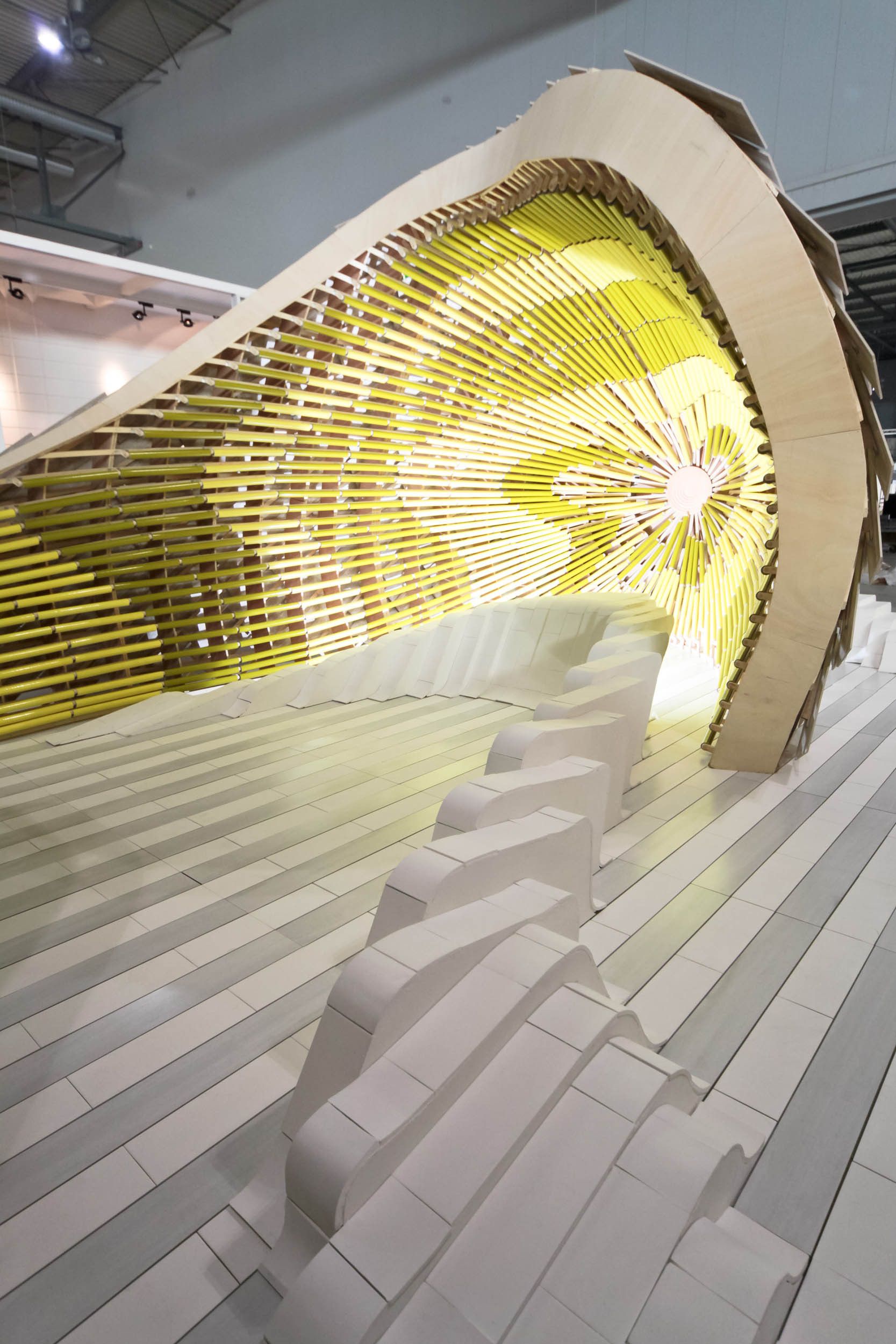 Fluidity is an installation designed by GGlab + Paulo Flores from the occasion of MADE exhibition in Milan, Italy and Cevisama exhibition in Valencia, Spain. Today’s social reality forces public spaces to be more compound. It is not enough to create only a place where people can gather. Modern public spaces should be well connected with society on the one hand but on the other hand they should have relation with the environment.