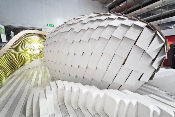 Fluidity is an installation designed by GGlab + Paulo Flores from the occasion of MADE exhibition in Milan, Italy and Cevisama exhibition in Valencia, Spain. Today’s social reality forces public spaces to be more compound. It is not enough to create only a place where people can gather. Modern public spaces should be well connected with society on the one hand but on the other hand they should have relation with the environment.
