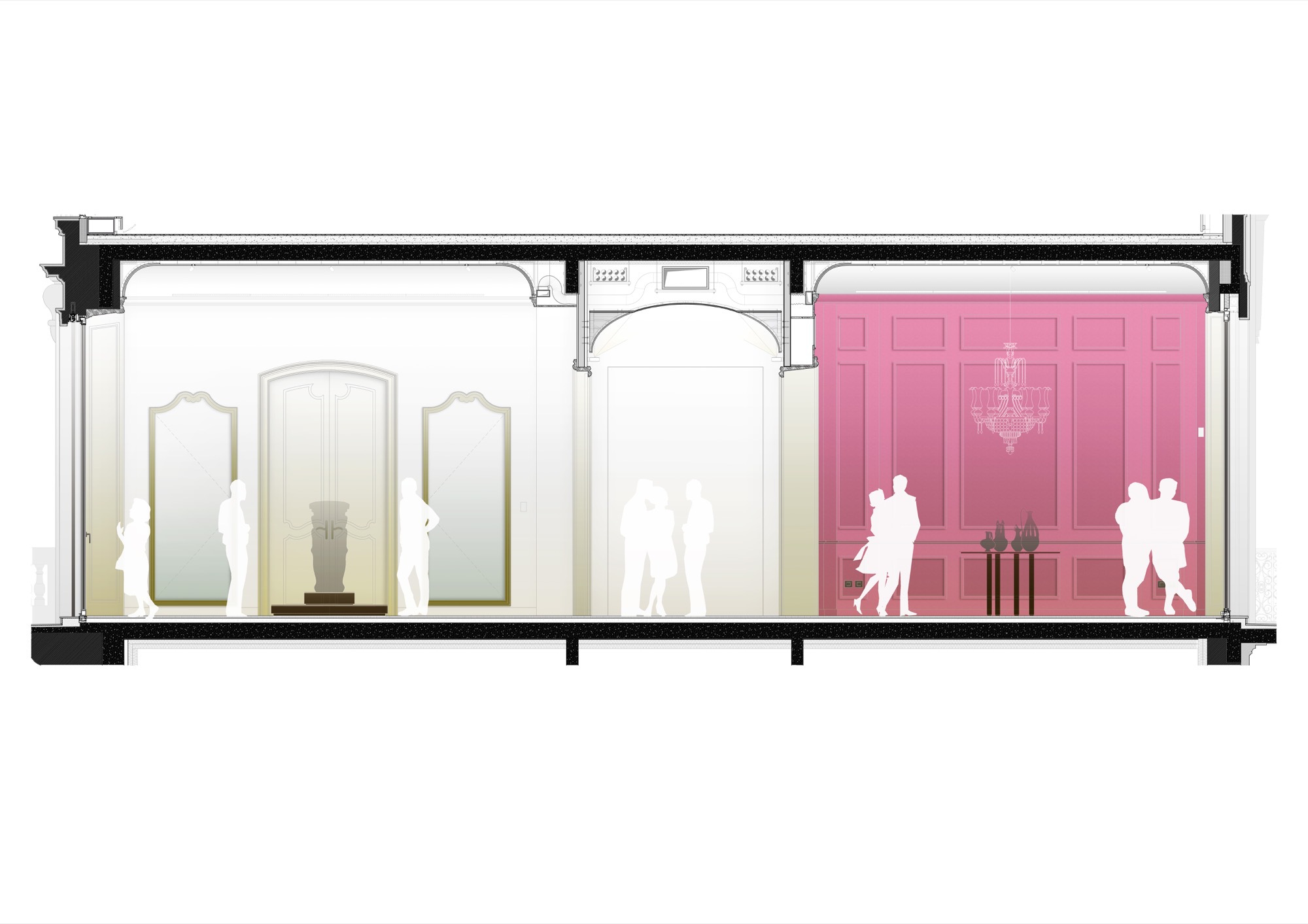 Cucinella further highlights that this theme of suspension resonates in the concept of the Etruscan archaeology galleries, where they aimed to create an environment that evokes a sense of suspension. It’s manifested in the presentation of Etruscan vases, which appear to hover in mid-air as they rest on nearly imperceptible bases, imbuing the space with an enchanting and ethereal quality.