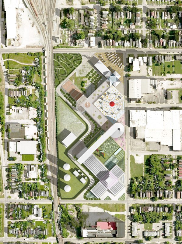 OMA has designed a masterplan for a mixed-use project that will provide a new centralized facility for the growing selling and distribution of food for local farmers and the community. Working in collaboration with the non-profit Seed Capital Kentucky of the city of Louisville, the Food Port will take significant steps towards rejuvenating a 24-acre vacant site into an active economic and community hub.