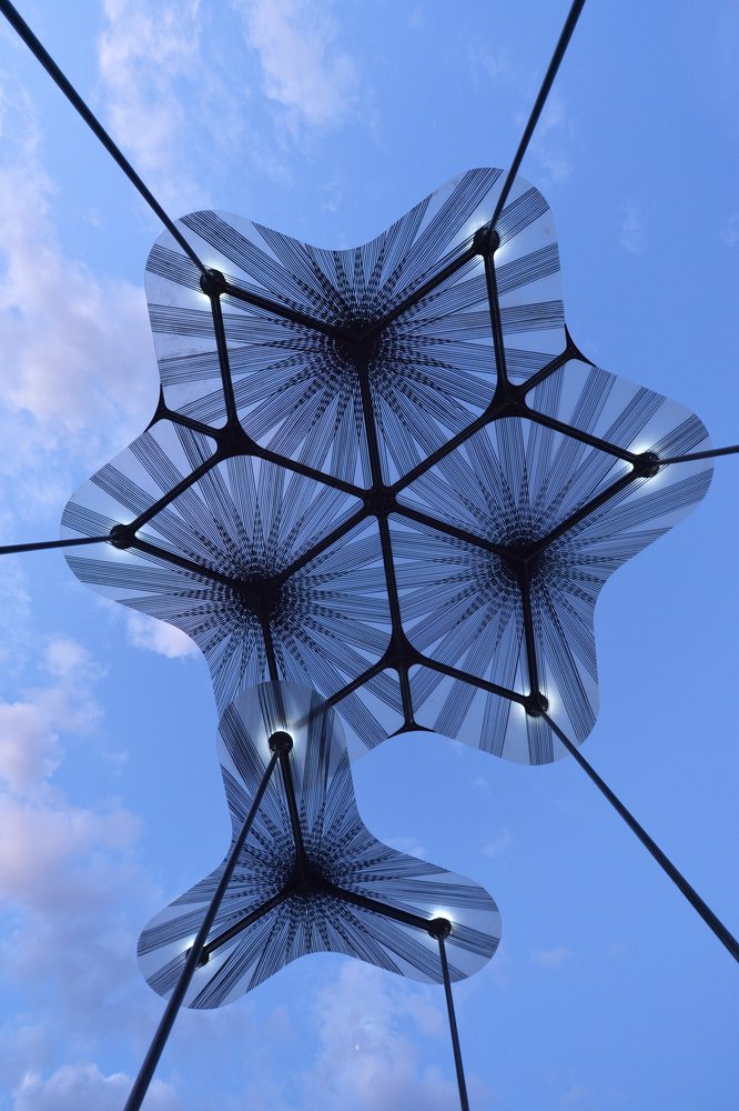 The canopy is in the shape of three to five meter wide petals made of thin composite material. These petals are fitted with LEDs that emits light during night giving a surreal experience. To enhance the whole impact, speakers have also been fitted in the petals to enhance the experience. To support the canopy, thin columns have been used but they are made of carbon fibers which allow them to sway with the wind while hiding the electrical wiring for lighting as well as speakers. According to Amanda, “By exploiting the temporary nature of the pavilion form, our design subverts the norms of immovable. It embraces and amplifies such distinctions, so that it speaks in response to the weather, and moves with the wind rather than trying to keep it at bay.” Overall, the designers have achieved the effect that they were looking for although the longevity of such technological application leaves a lot to be desired. Hopefully, further experiments will remove this flaw thereby allowing general population to enjoy such luxuries.